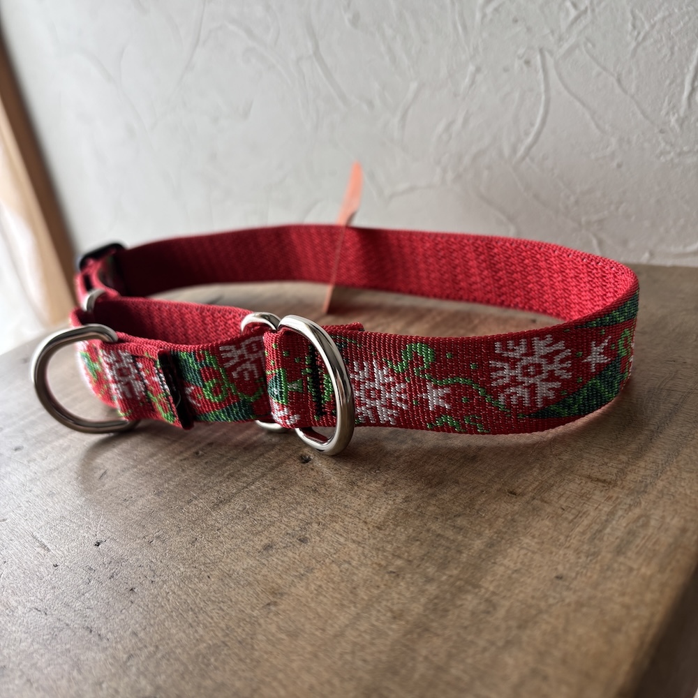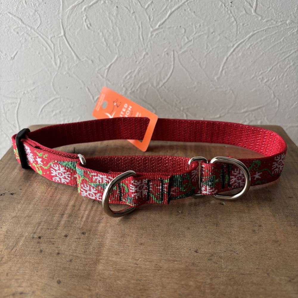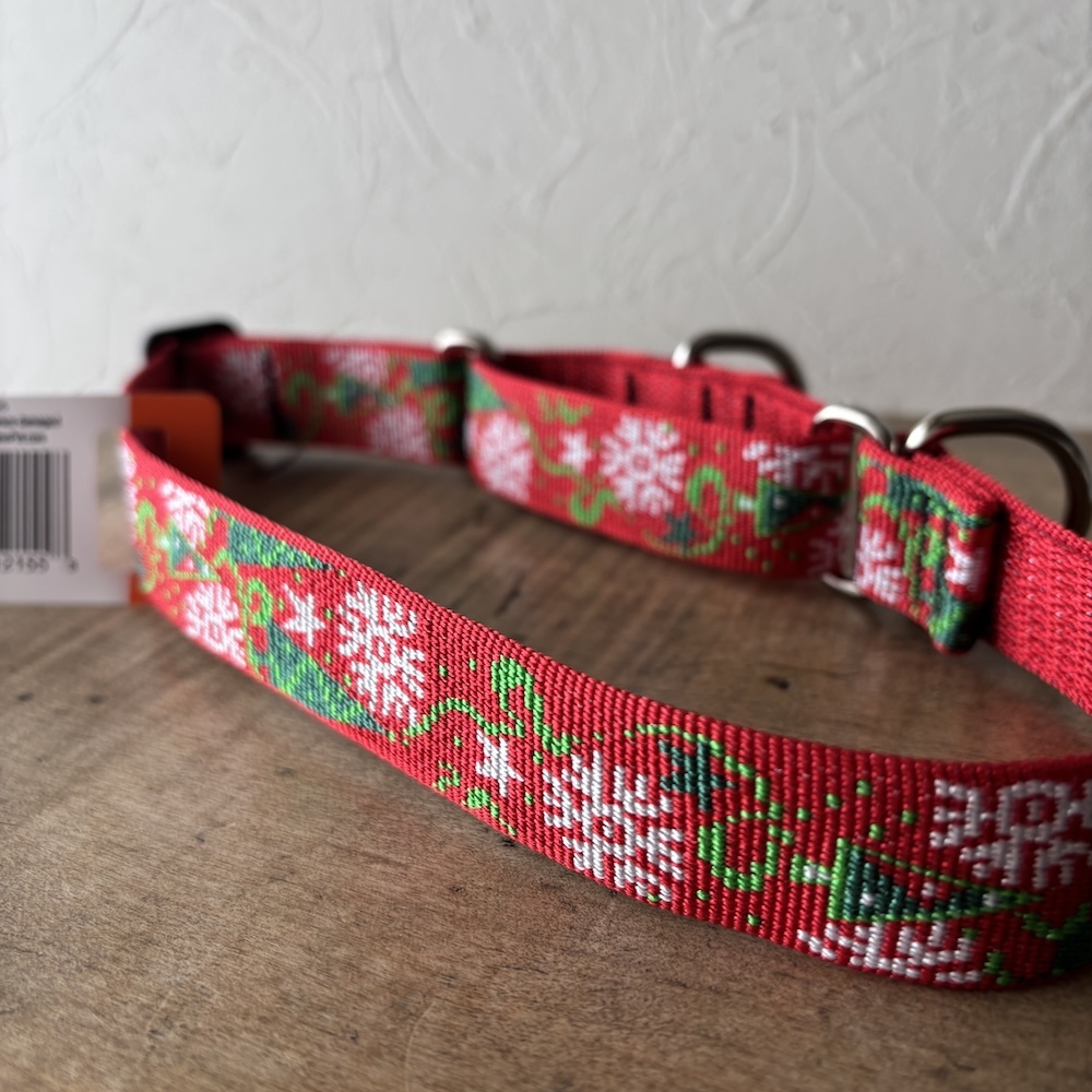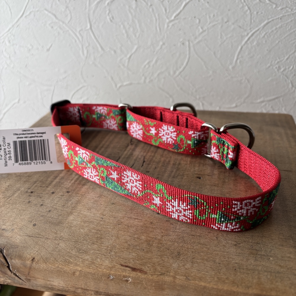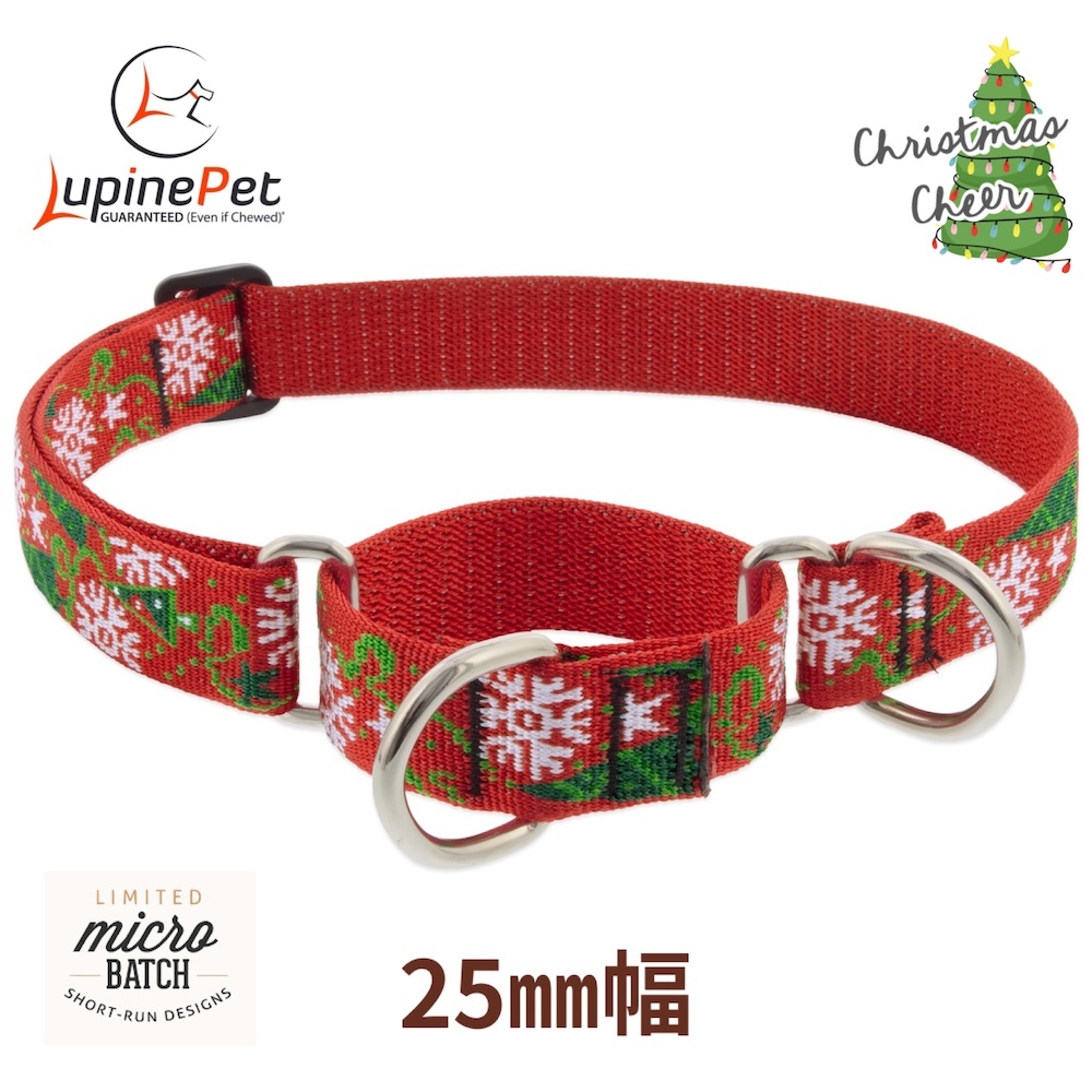 ハーフチョークカラー・Mサイズ・25mm幅 クリスマスチアー柄 38-55cm LUPINEルパイン アメリカ製 軽量丈夫・中型犬・大型犬 收藏