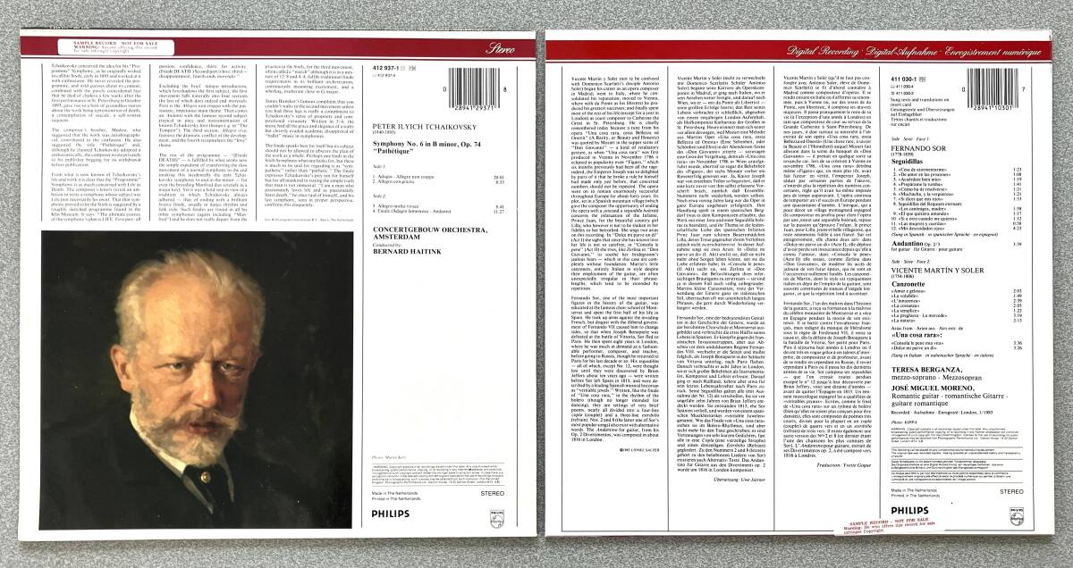 レコードはすべて1984年以降に発売された最高期LPで、デジタル録音のものが多く、製品はアナログ・レコード製造技術が頂点に達した蘭PHILIPS工場で製造されたものですので究極の品質と音質を持っています。