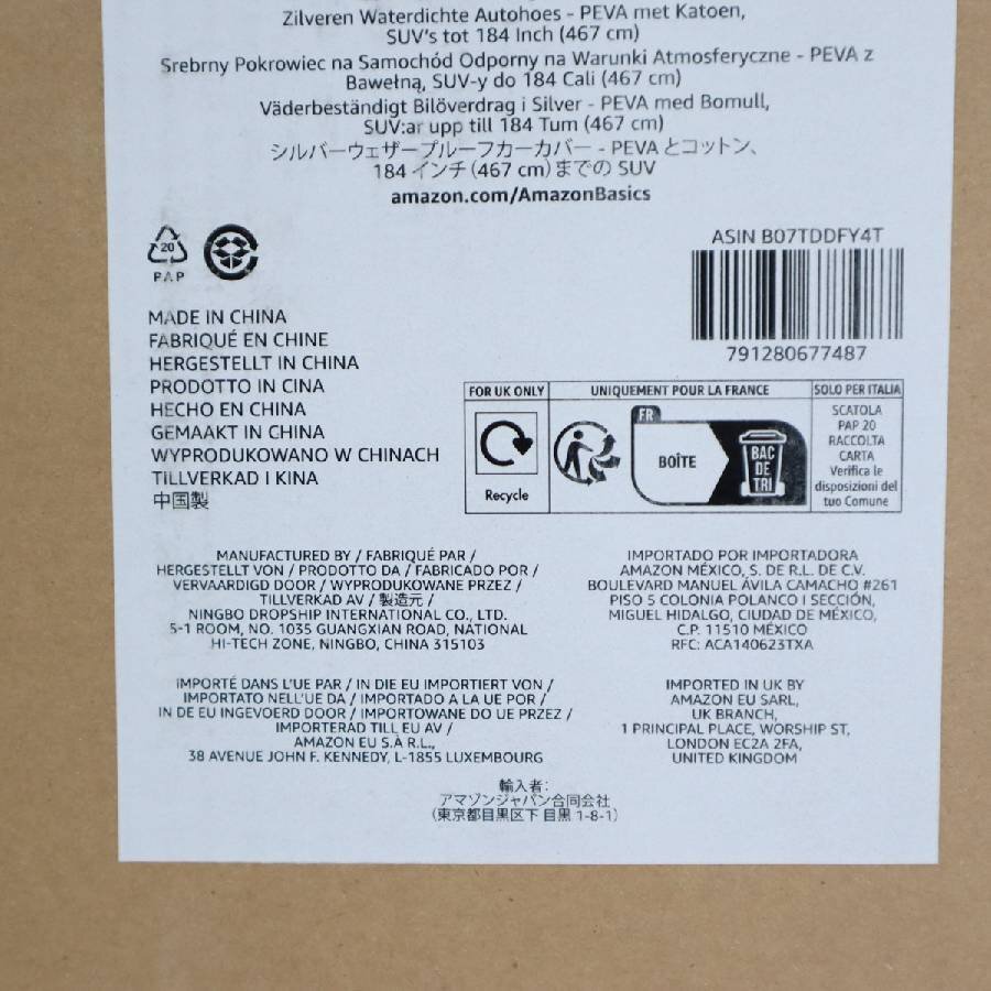 アマゾンベーシック 自動車用防水カバー PEVAコットン付き SUV用 シルバー 最大約467cmまで B07TDDFY4T☆285h26 收藏