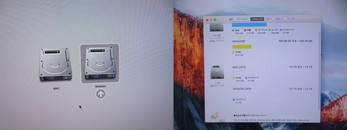 ◆ SSD & HDD :高速起動 SSD 512GB OS用 + HDD 3000GB データ用 ( パーティションはMac,Windowsそれぞれ SSD256GB + HDD 1500GBで分けてありますので、ご利用目的に応じて使い分けできます。)