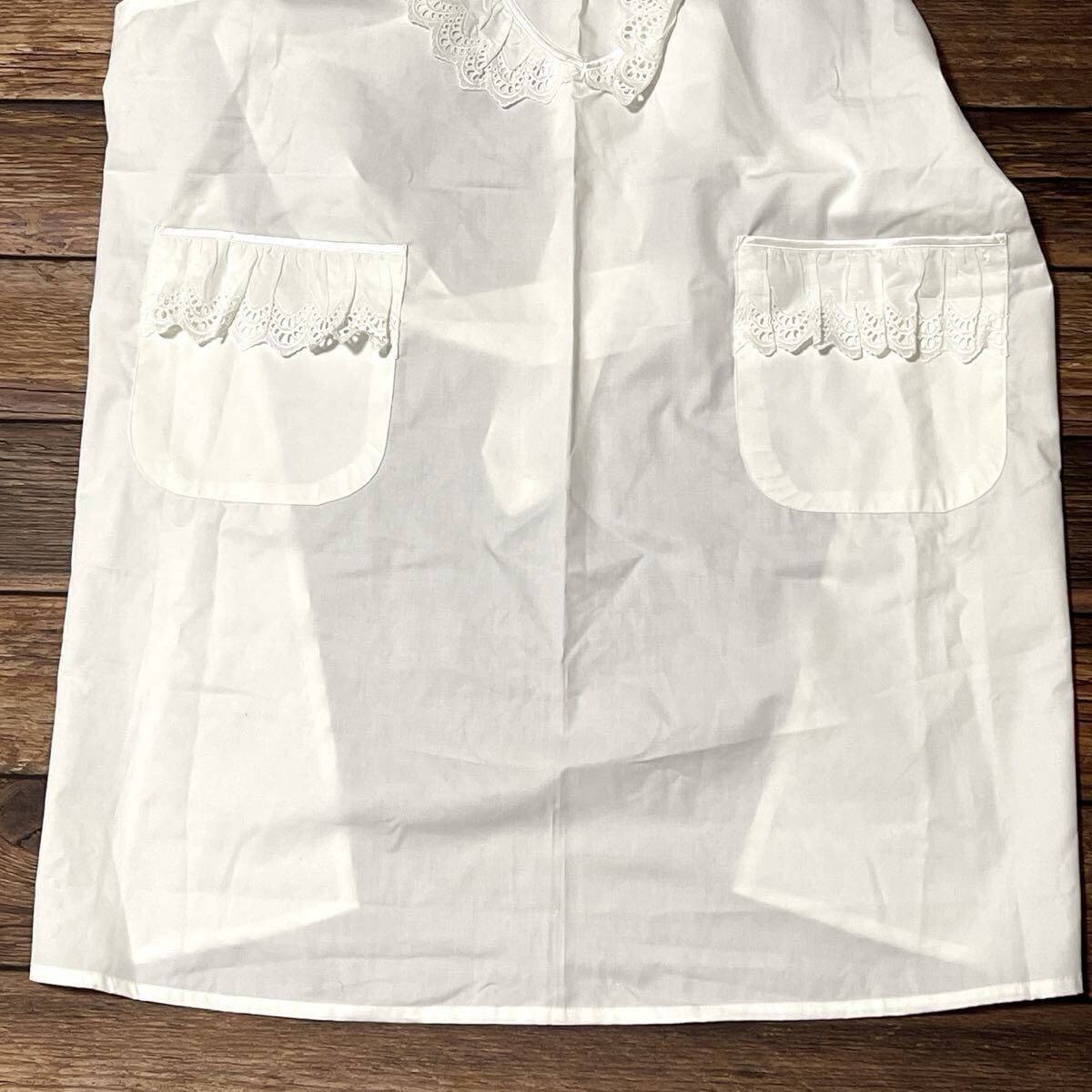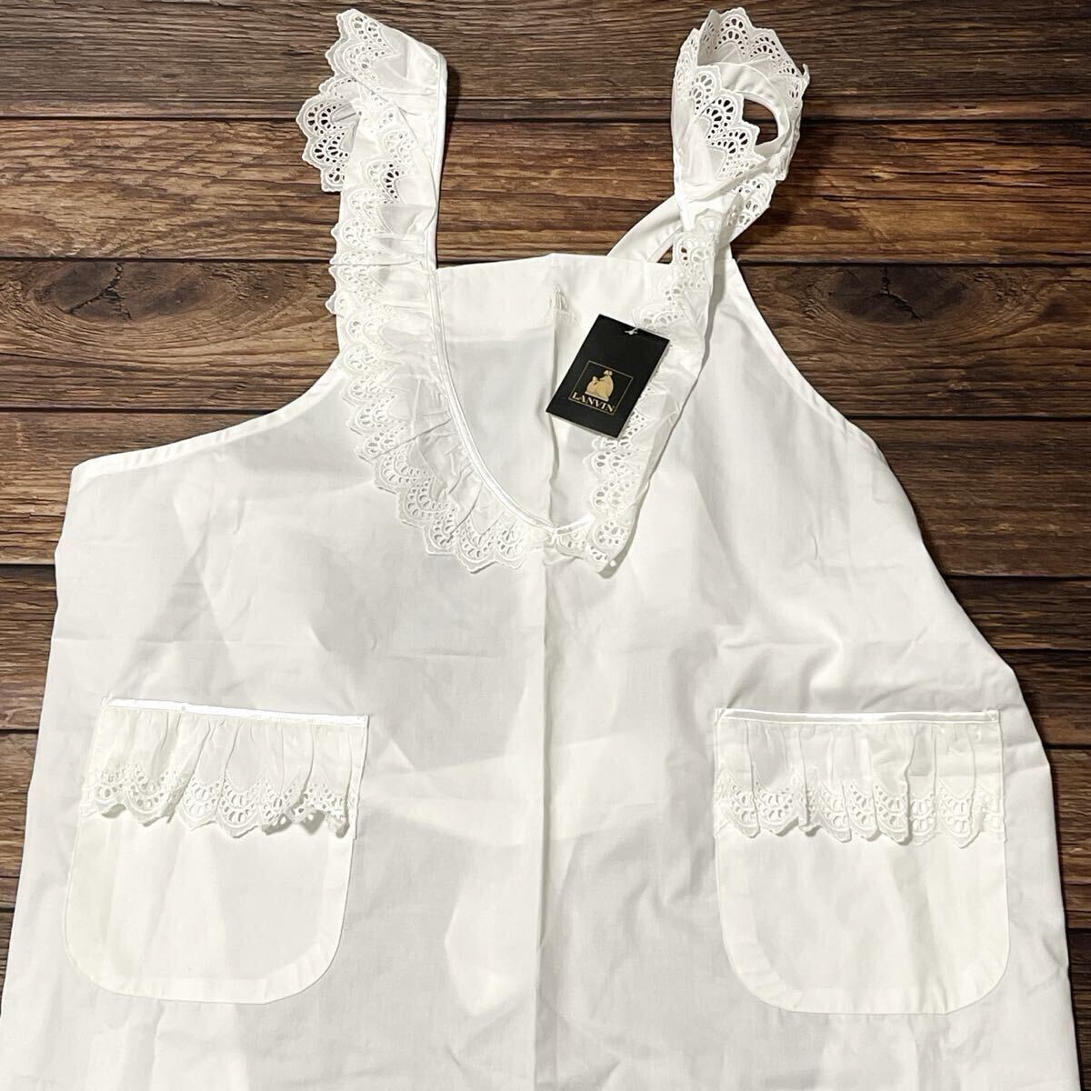 新品 未使用 LANVIN ランバン エプロン コラボ 日本製 コットン フリル 昭和レトロ レディース ロング丈 膝下 ひざ下 ホワイト 白 フリー 收藏