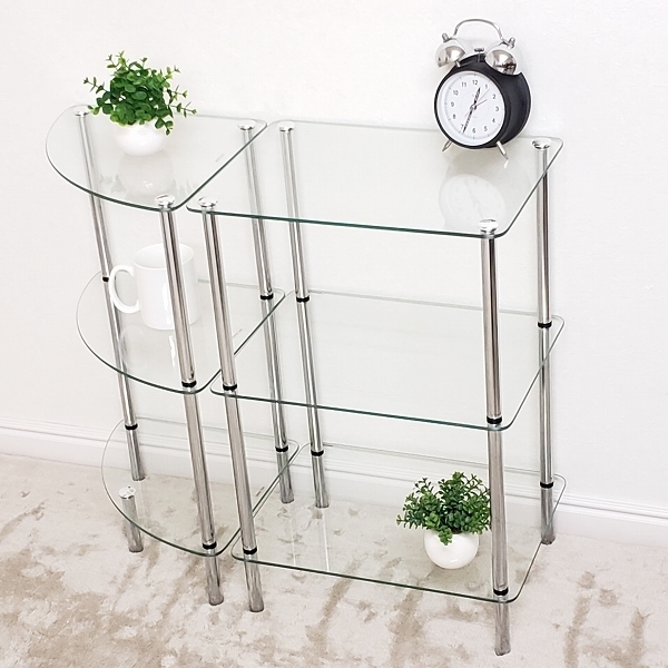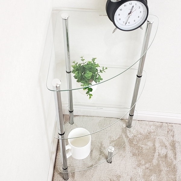 ガラスラック コーナータイプ クリア色(透明) 送料無料(北海道・沖縄・離島へは発送不可) お客様による組立が必要です。SMJ-102WH 收藏