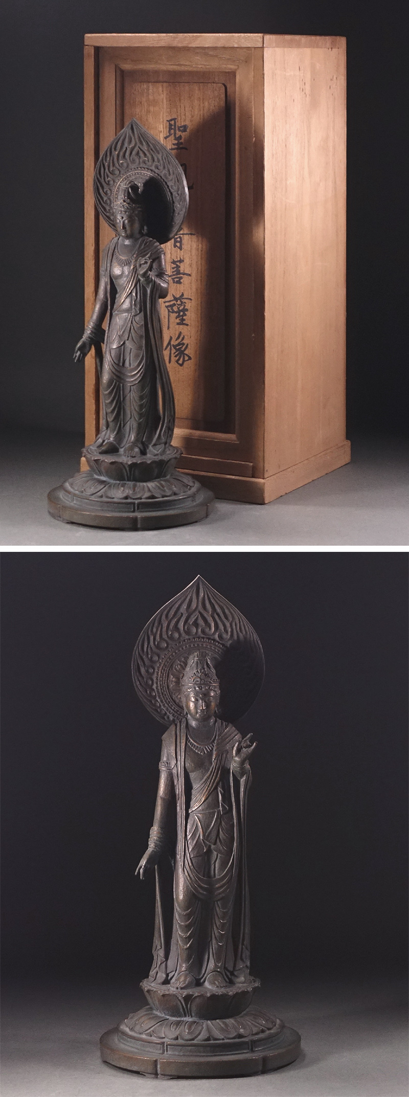 ∇花∇大仏師【松久宗琳】作 銅造聖観世音菩薩立像 共箱付 写実美麗な宗琳仏 收藏