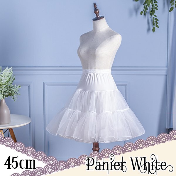 送料無料 二層 パニエ ホワイト 45cm インナースカート インナー アンダースカート ボリュームアップ スカート ワンピース ドレス ロリータ 收藏
