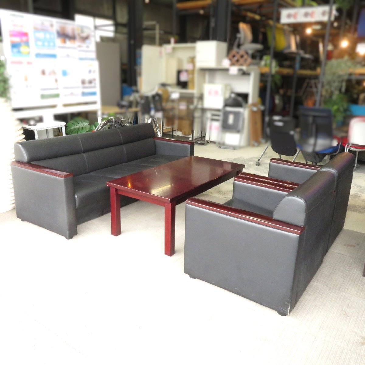 応接ソファセット ブラック 木目調 高級感 エグゼクティブ モダン 役員 椅子 イス 会議 商談 書斎 業務 応接室 AG17321 中古オフィス家具 收藏
