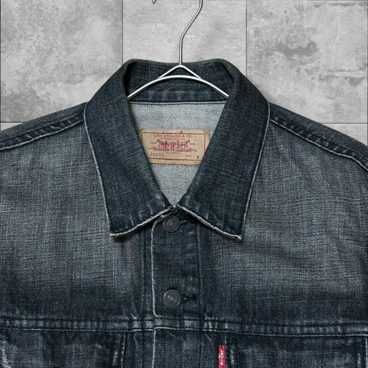 Levis リーバイス 70599 先染め ブラック 黒 デニムジャケット トラッカージャケット Mサイズ ヴィンテージ加工 ユーズド加工 ジージャン 收藏