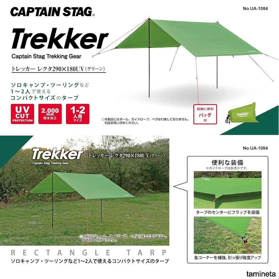 CAPTAIN STAG Trekker UA-1084 グリーン トレッカーレクタ タープ 290*180 1-2人用 UVカット 手軽に日陰を作れるうえに、急な雨も防げます 收藏