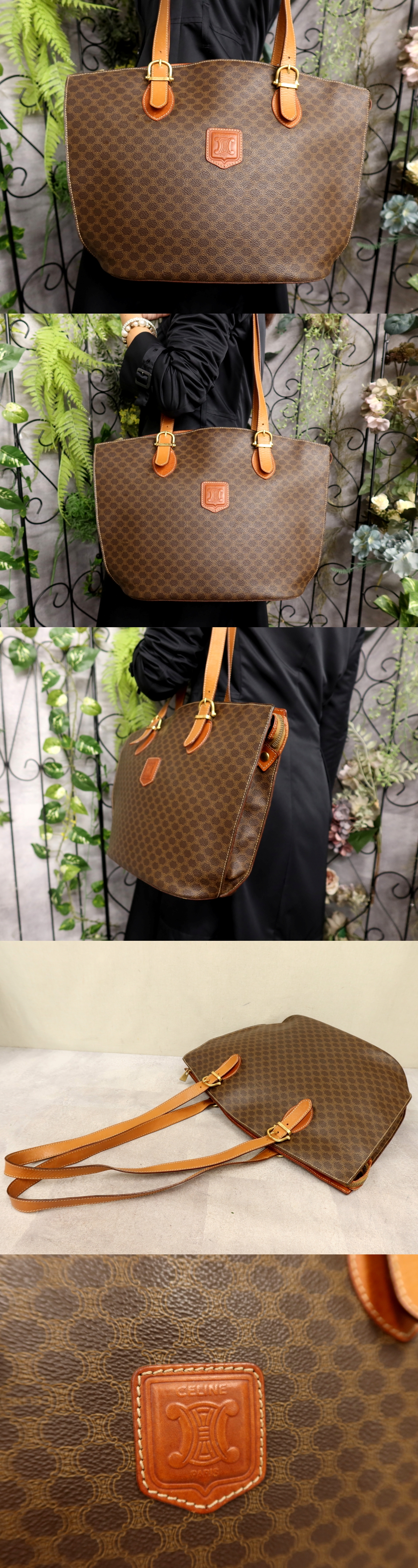 ●超美品●セリーヌ●マカダム●ロゴ型押し●PVC カーフ レザー 本革●ショルダー トート バッグ●ブラウン●ヴィンテージ●B5●Js61681 收藏