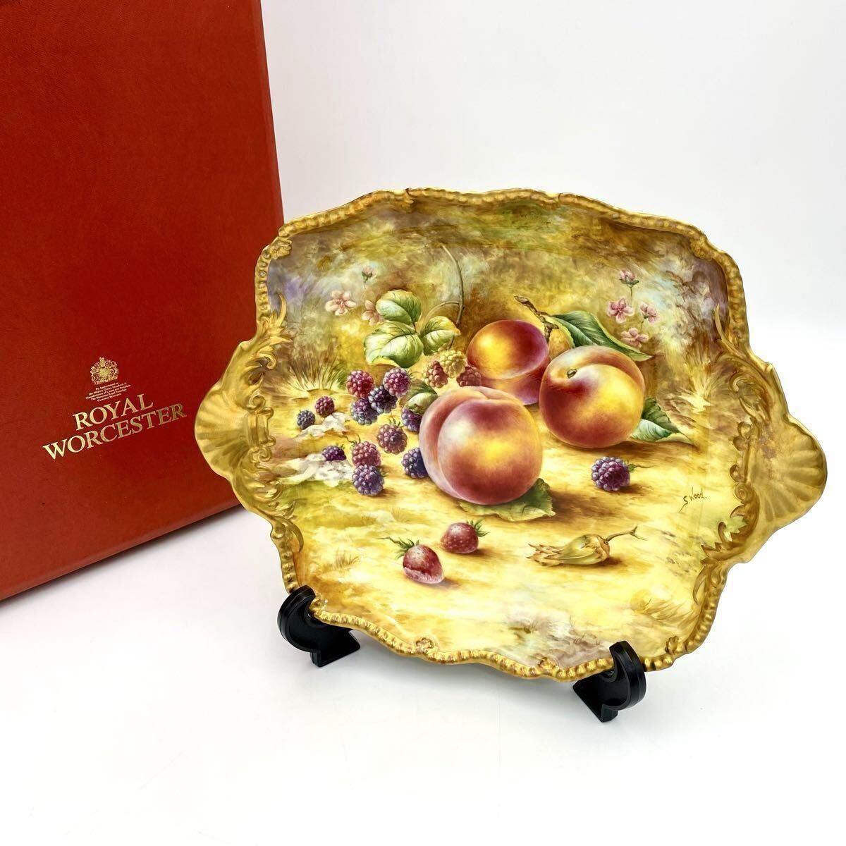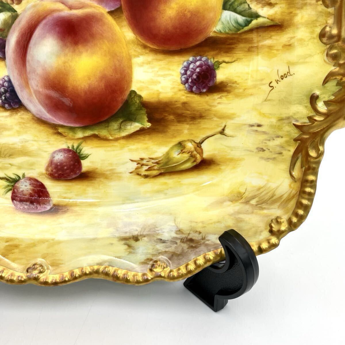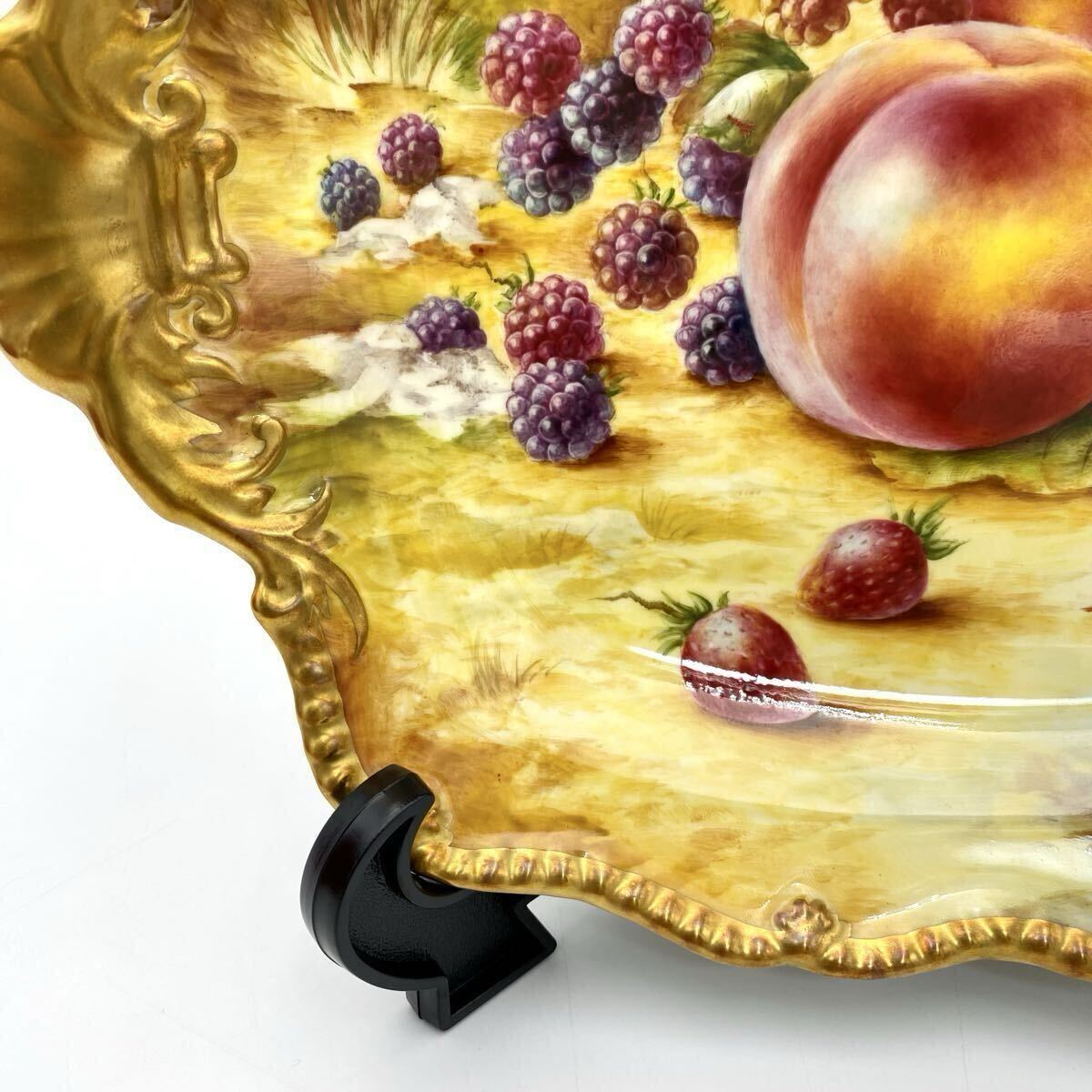 【希少/高級】ROYAL WORCESTER ロイヤルウースター 金彩 ペインテッドフルーツ ハンドペイント プレート 飾皿 イングランド製 スタンド付き 收藏