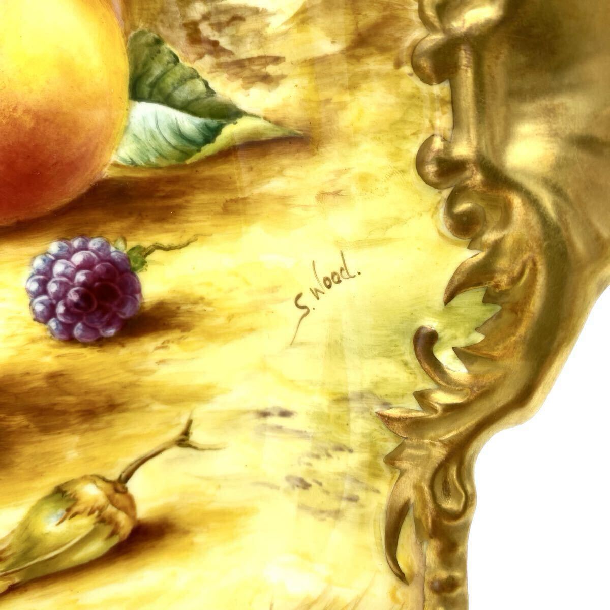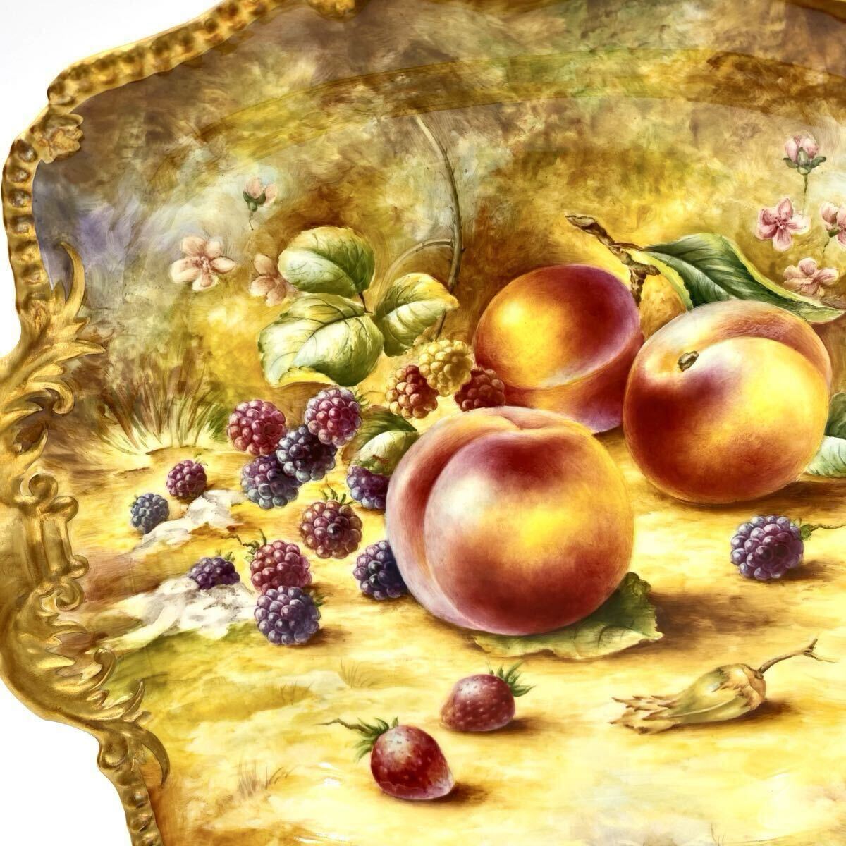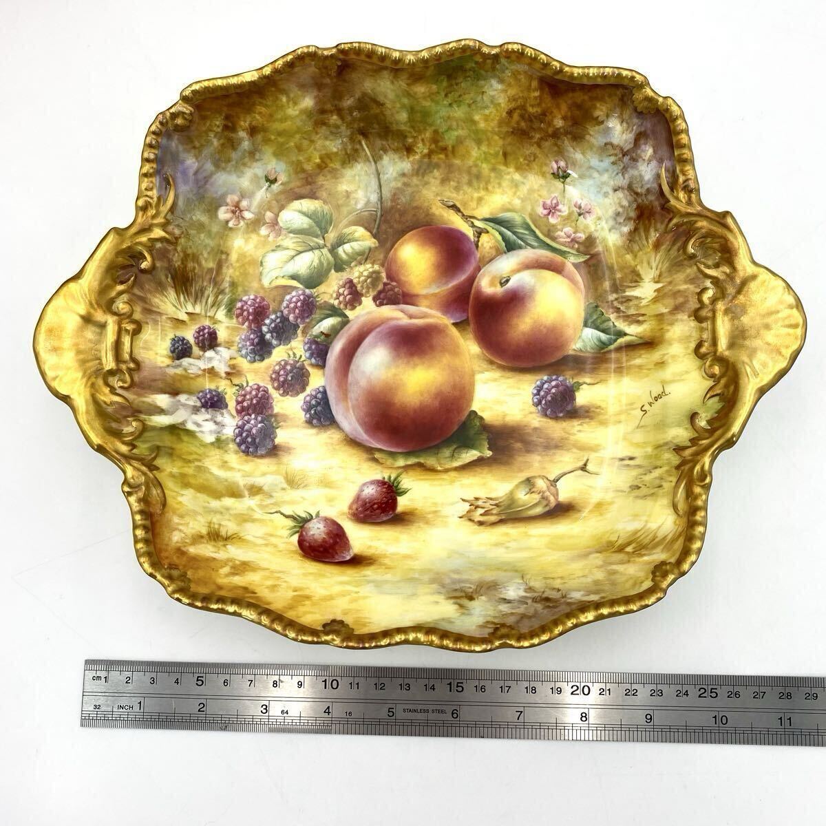 【希少/高級】ROYAL WORCESTER ロイヤルウースター 金彩 ペインテッドフルーツ ハンドペイント プレート 飾皿 イングランド製 スタンド付き 收藏