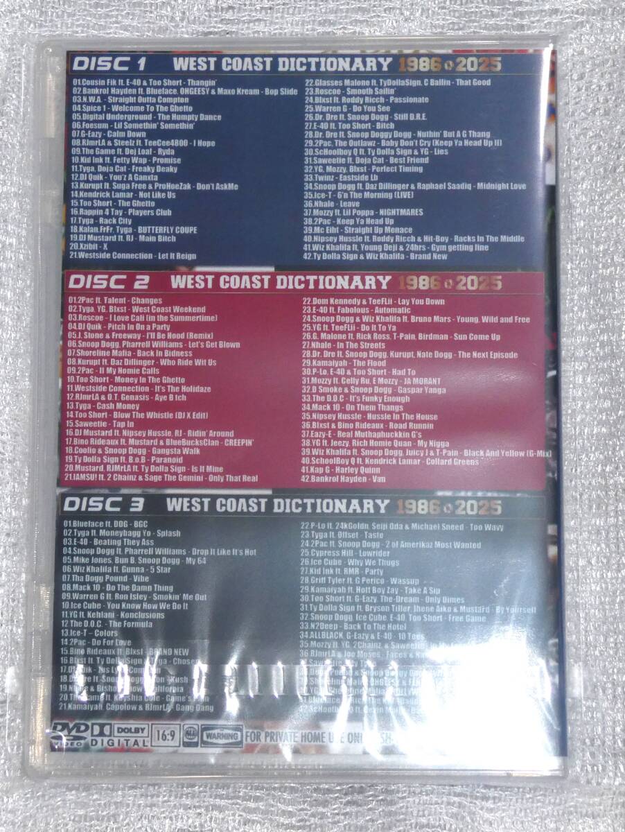 最新/西海岸ラップ40年間のベスト CALIFORNIA WEST COAST DICTIONARY1 1986-2025/DVD3枚組/全126曲 收藏