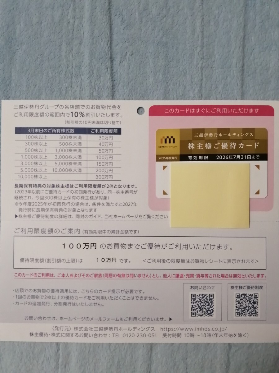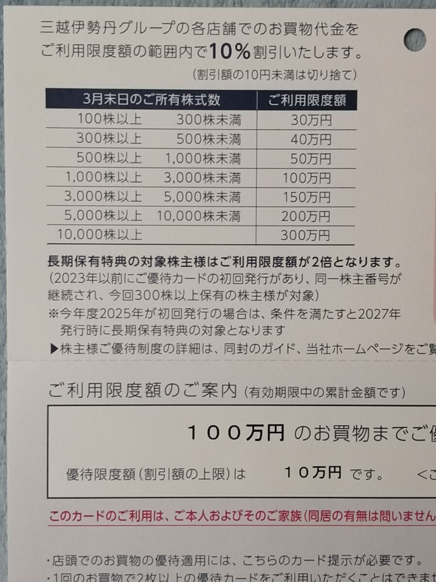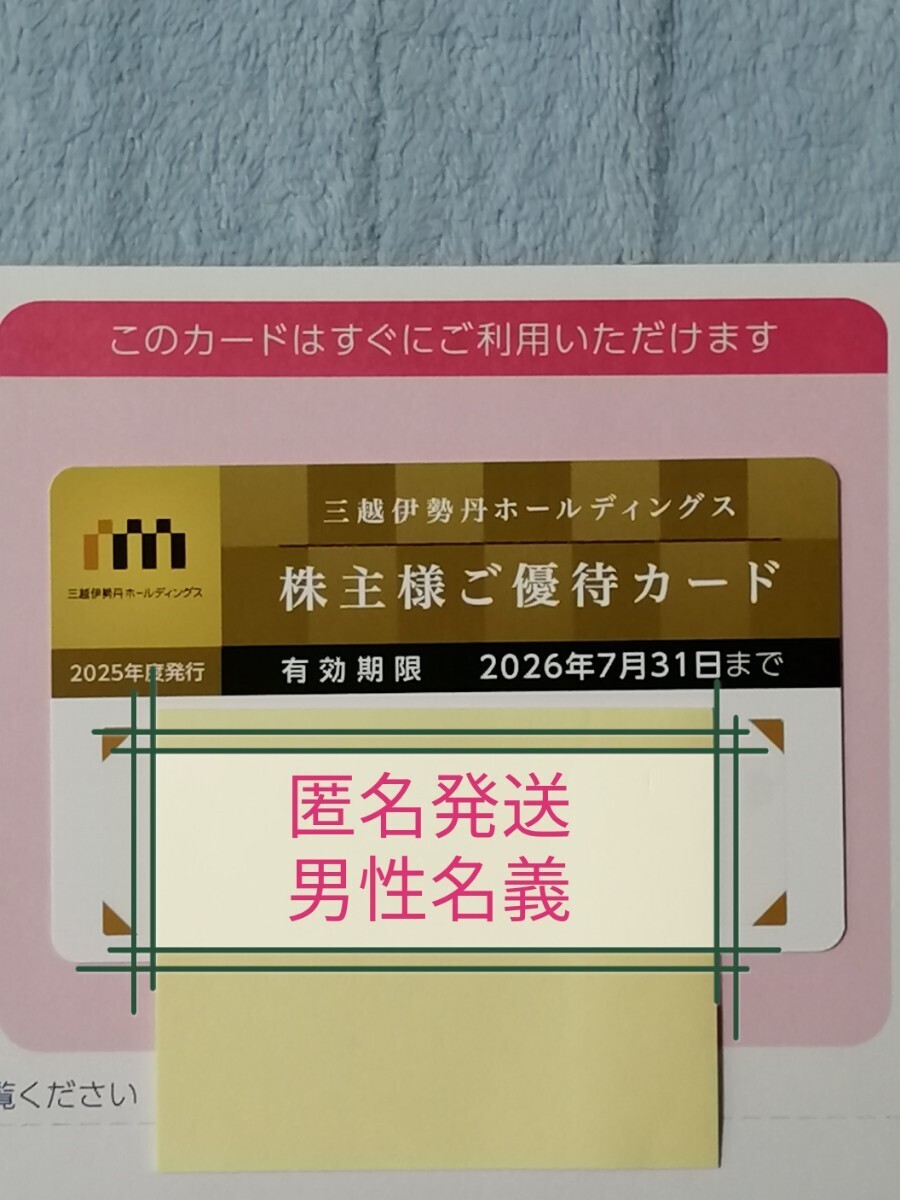 【 匿名】 三越伊勢丹 株主優待カード 男性名義 限度額100万円 残高 満額 2026年7月末まで ★ かんたん決済可★ 收藏