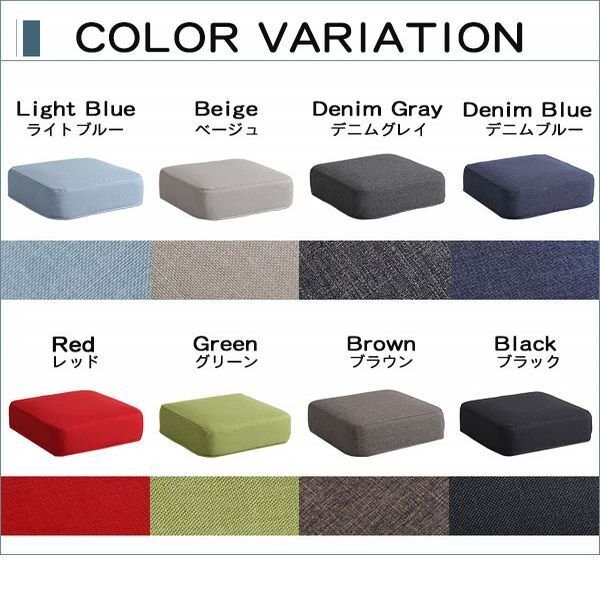 | 【カラー】 ベージュ、ブラック、ブルー、ブラウン、グリーン、グレー、ライトブルー、レッド 【サイズ】 W48xD48xH17cm/個 【重量】 1.5kg/個 【素材】 中材:ウレタンフォーム カバー:表地ポリエステル100% 裏地ポリエステル100% 【梱包】 サイズ:W44xD40xH48cm、重量:3.5kg 【その他】 日本製(カバーは中国製) 【完成品】 カバーはお客様取り付けです。 【ご注意】 ・サイズ、重量は概算です。 ・商品カラーはご使用のモニターによって実際の明るさや色と異なって見える場合がございます。 |
