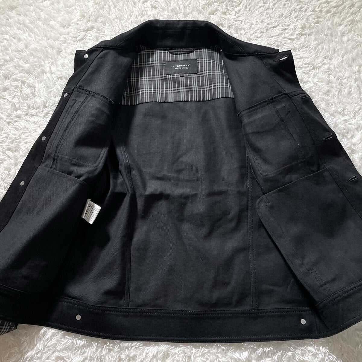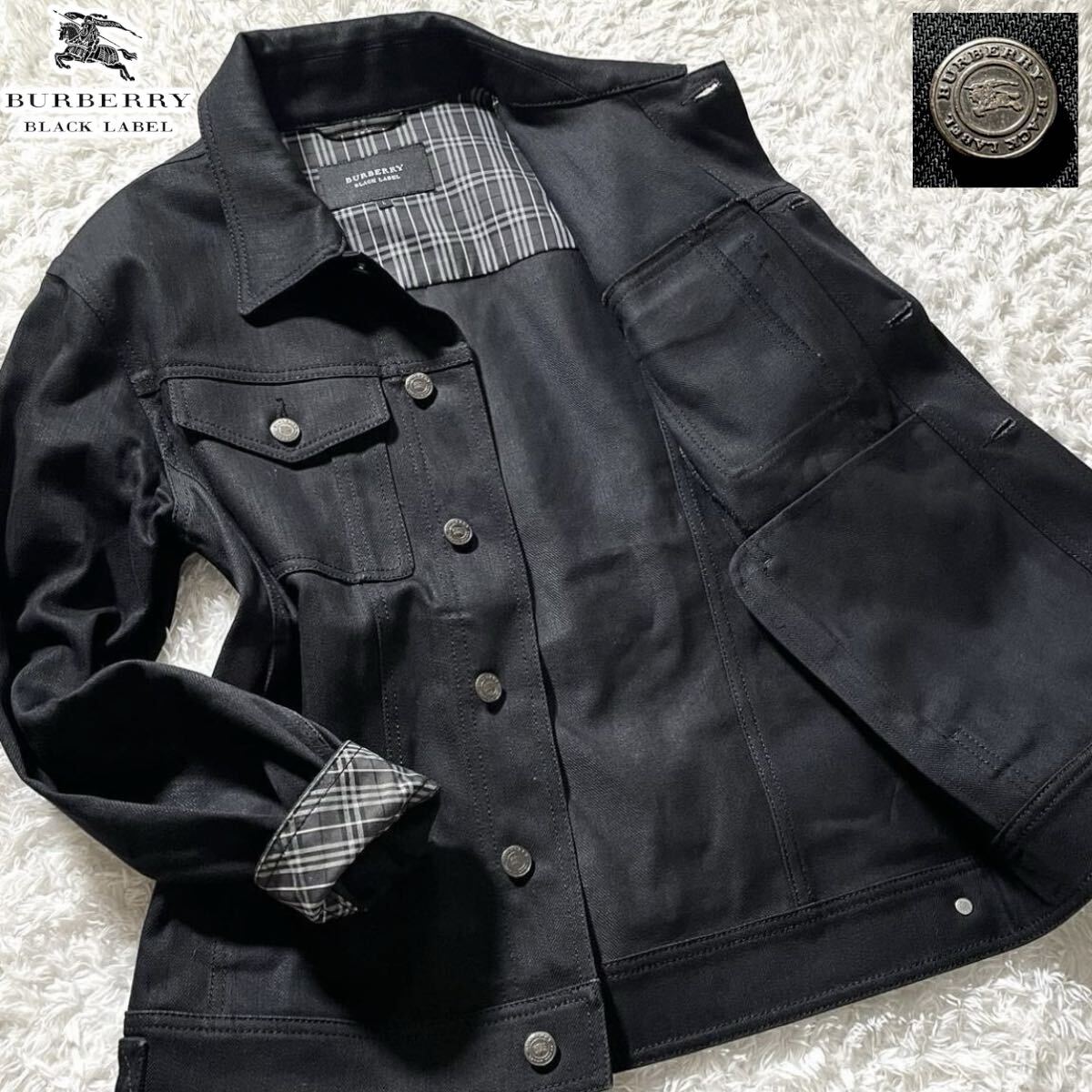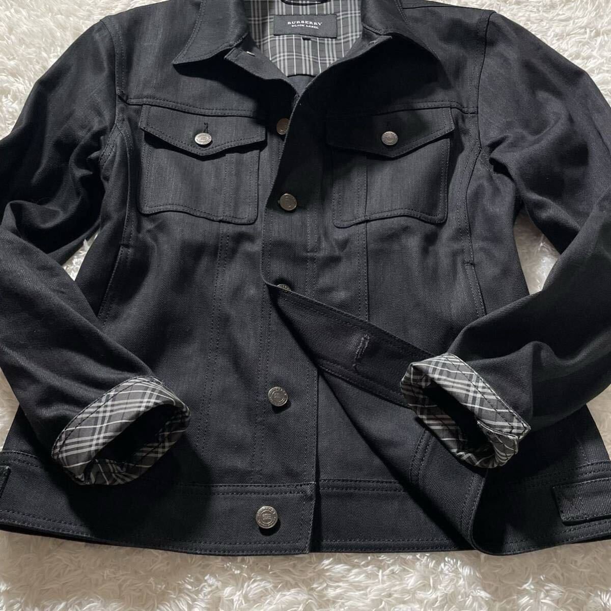 未使用級/Lサイズ●バーバリーブラックレーベル デニムジャケット Gジャン BURBURRY BLACK LABEL 裏地ノバチェック ホースロゴボタン 黒 收藏