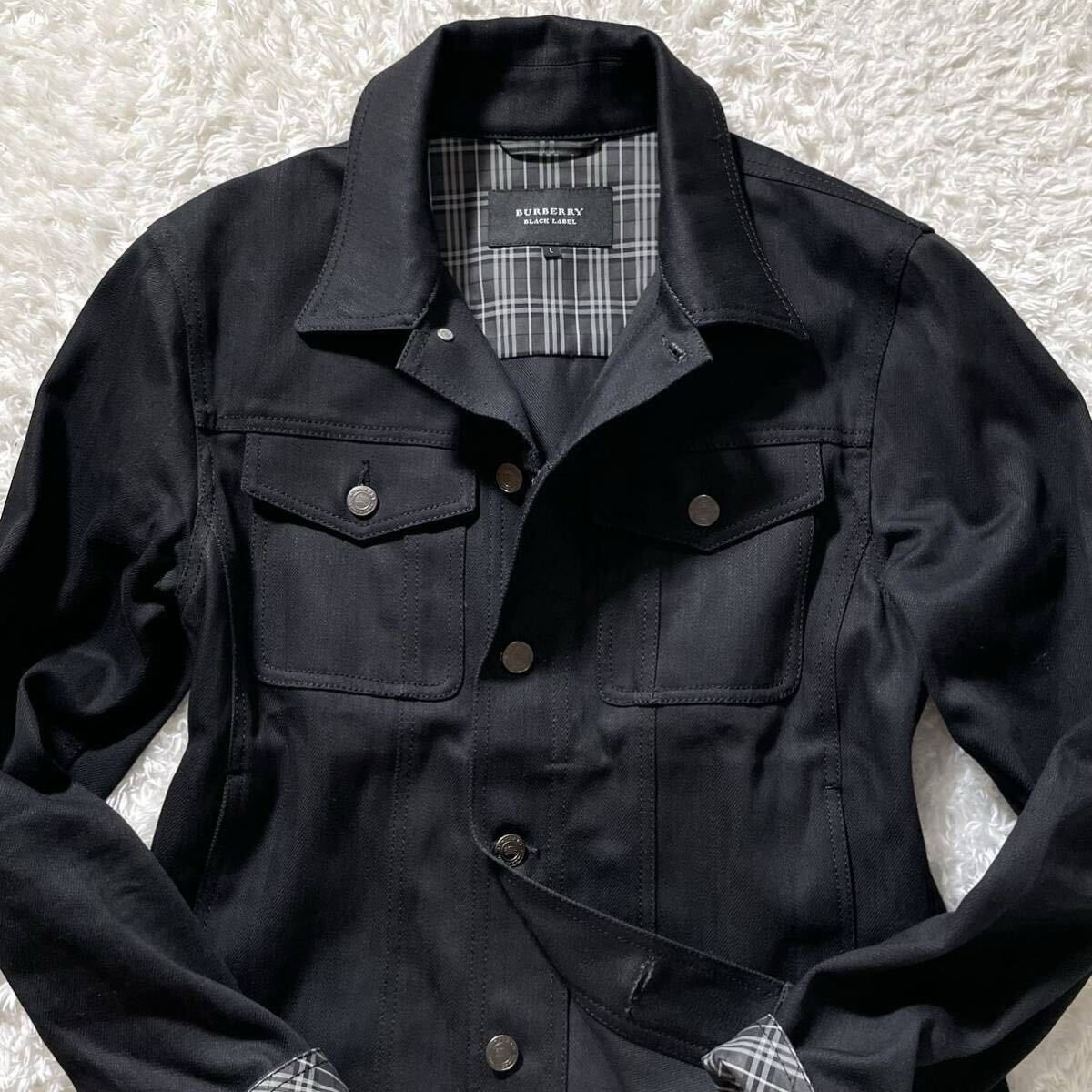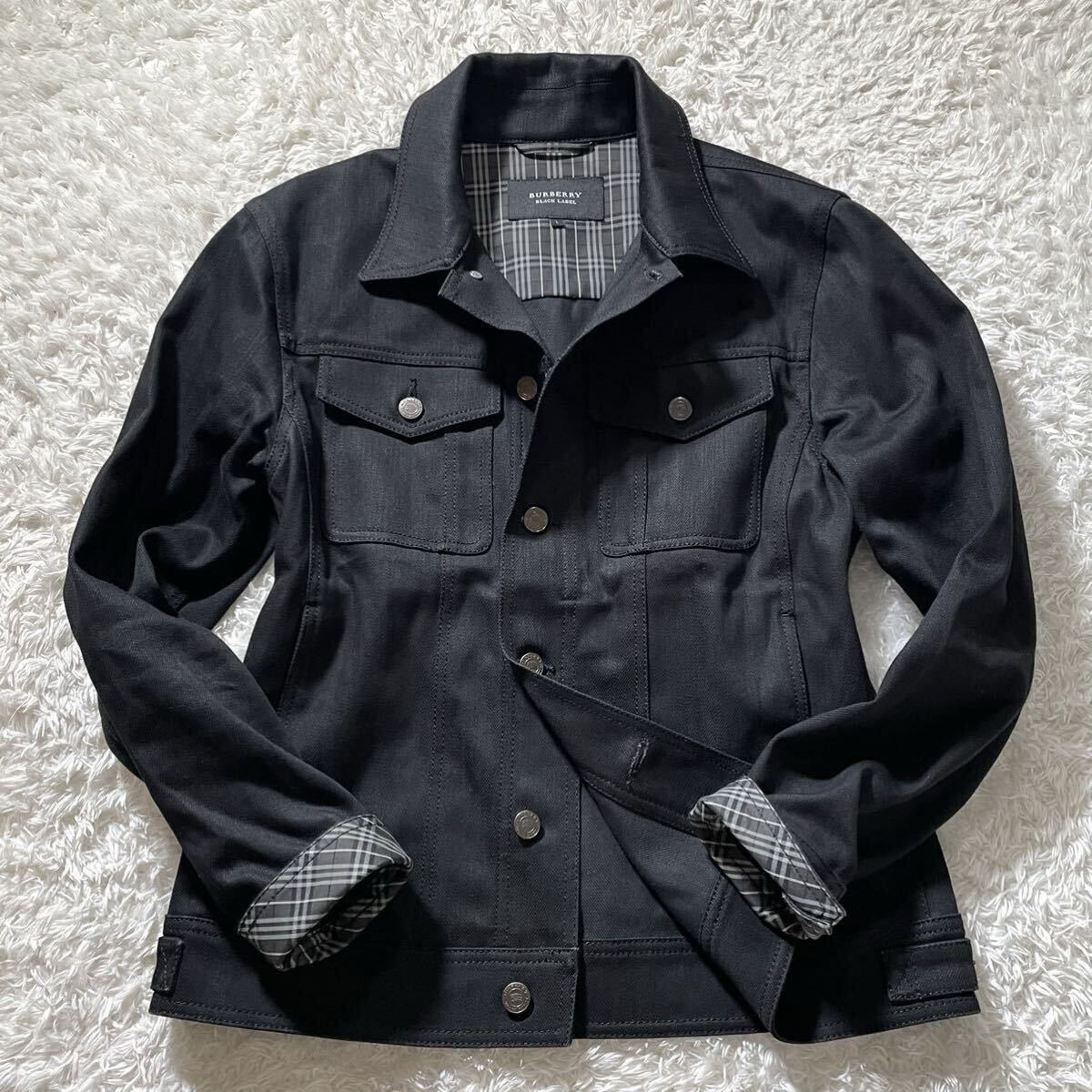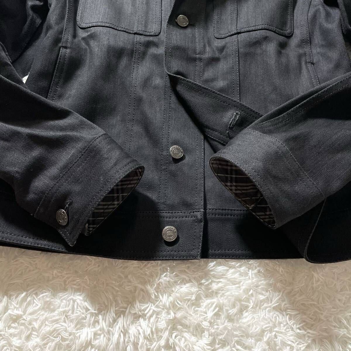 未使用級/Lサイズ●バーバリーブラックレーベル デニムジャケット Gジャン BURBURRY BLACK LABEL 裏地ノバチェック ホースロゴボタン 黒 收藏