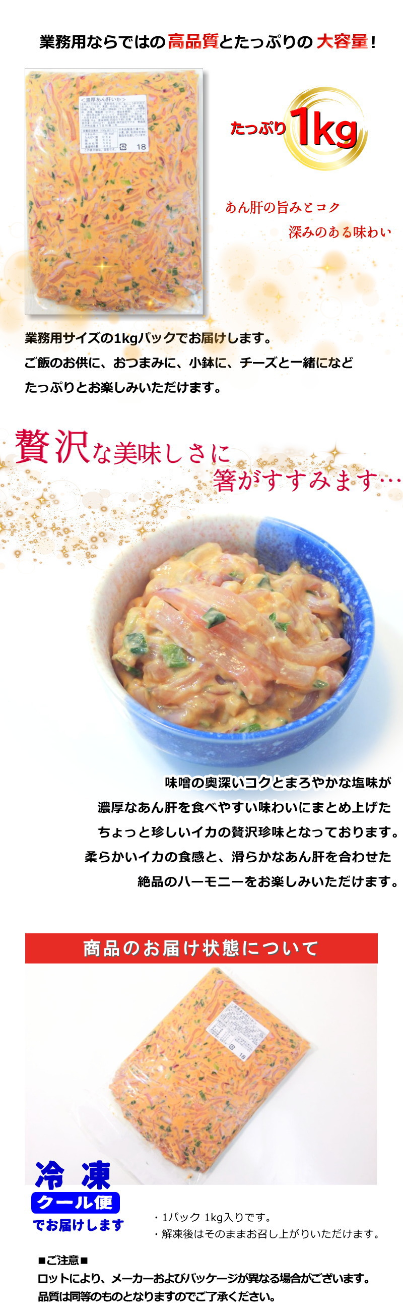【Max】濃厚!アン肝いか イカのアンキモ和え 1kg 珍味 国内加工品 冷凍 業務用 鮟鱇肝和え 濃厚あん肝いか 收藏