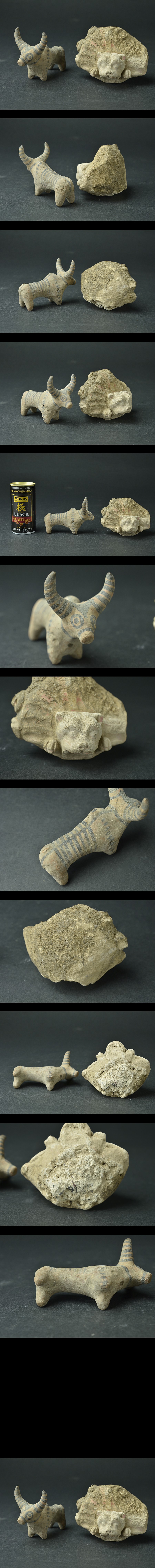 【YB】紀元前25世紀~15世紀頃 古代インダス文明 彩絵コブウシ土器・獅子レリーフ 2点まとめ ★古代オリエント古玩骨董25Y991 收藏