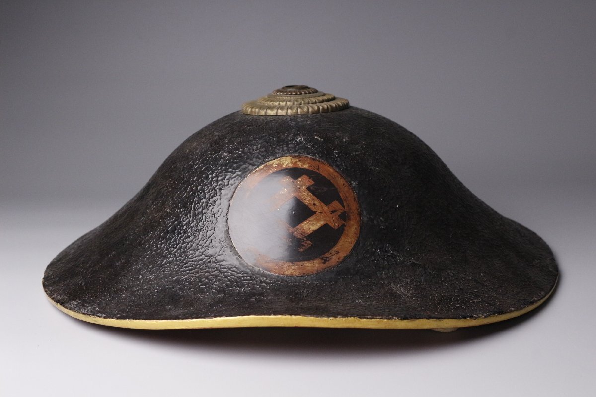 【LIG】江戸期 丸井桁家紋入陣笠 内朱塗 甲冑 時代武具 [.QQ]25.10 收藏