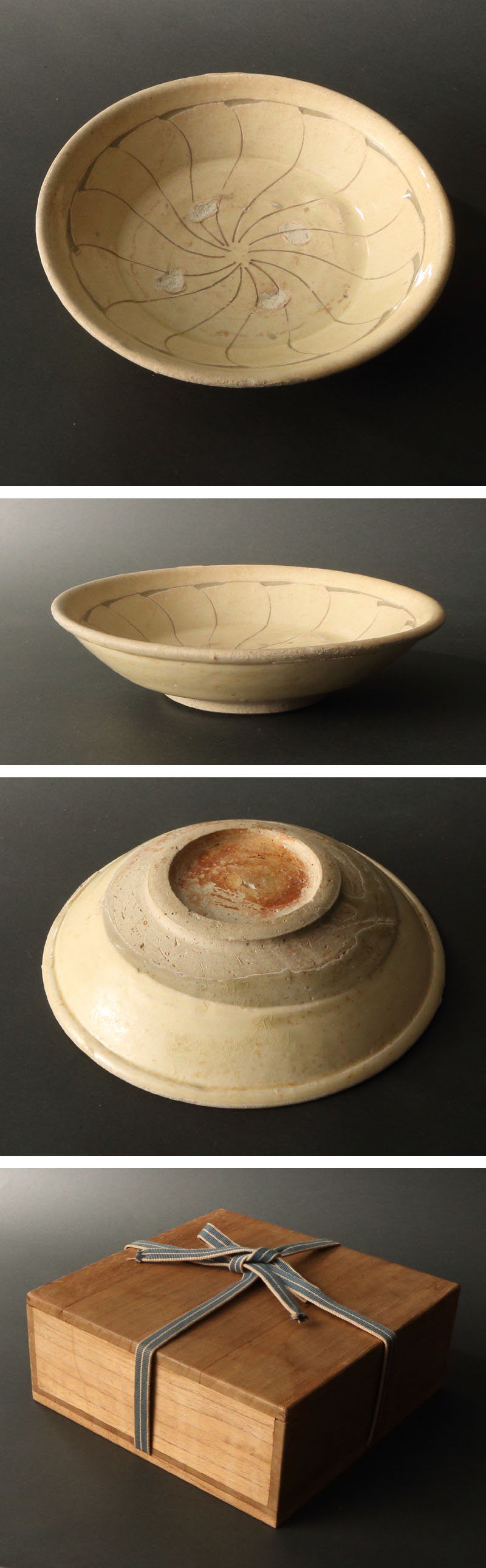委託HK◇時代 李朝粉青掻落捻蓮葉文鉢(和食器 菓子鉢 刻花 粉青沙器 鶏龍山窯 龍山里 朝鮮古美術 韓国古美術) 收藏
