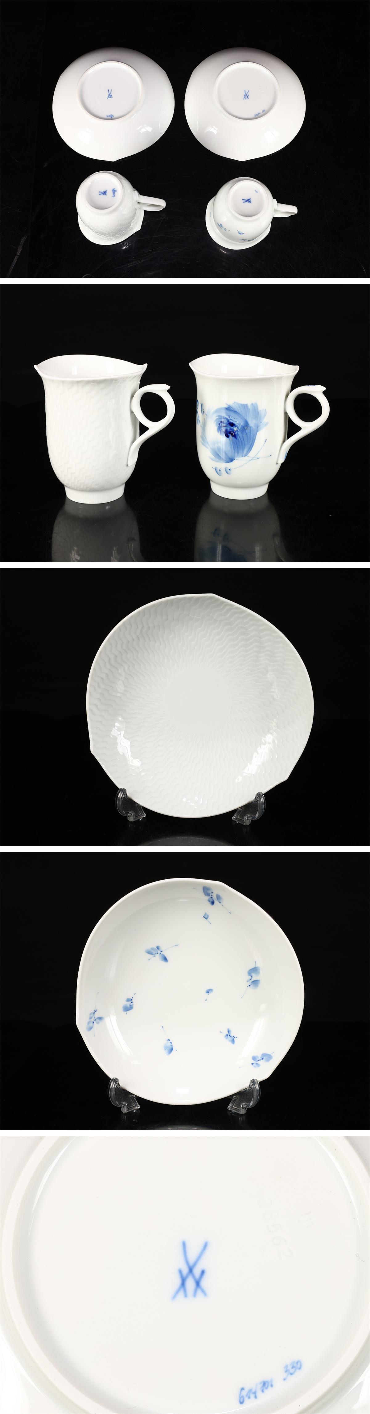 【吉】CN709 MEISSEN 【マイセン】 白磁 染付 カップ&ソーサー 2組 4点セット/美品! 收藏