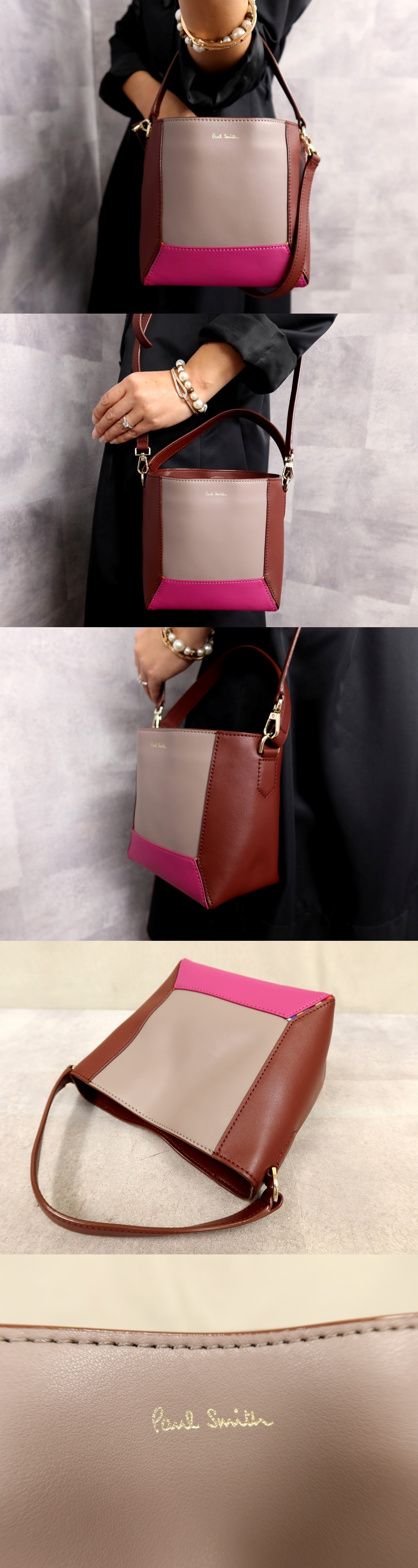 ●未使用 保管品●Paul smith ポール・スミス●カーフ レザー 本革●2way ハンド バッグ●グレー ボルドー マゼンタ●G金具●収納●Js62177 收藏