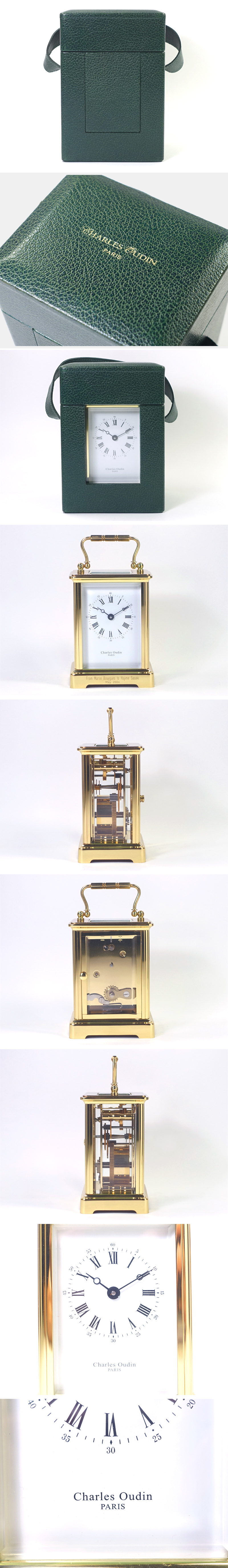 ∇花∇シャルルウーダン Charles Oudin キャリッジクロック 機械式枕時計 琺瑯文字盤 面取りガラス 専用ケース 動作良好 收藏