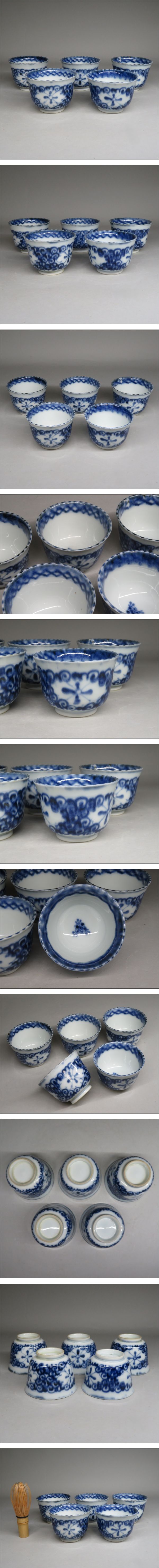 | 「コレクター所蔵品」◆江戸期 古伊万里 染付花菱唐草文蕎麦猪口 5客 ◆検:伊万里焼/有田焼/鍋島焼 | ||