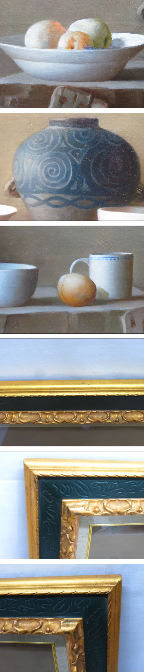 ◆◇【真作】中国画家 劉影『静物(果物と陶器)』油彩画 P8 8号 中国美術家協会会員 共シール 外箱 額装付◇◆ 收藏