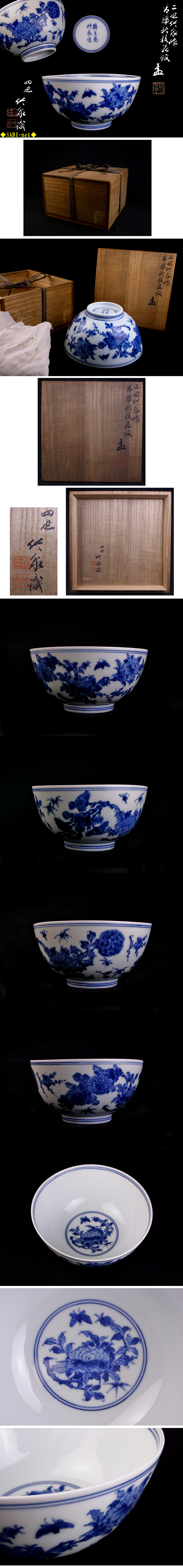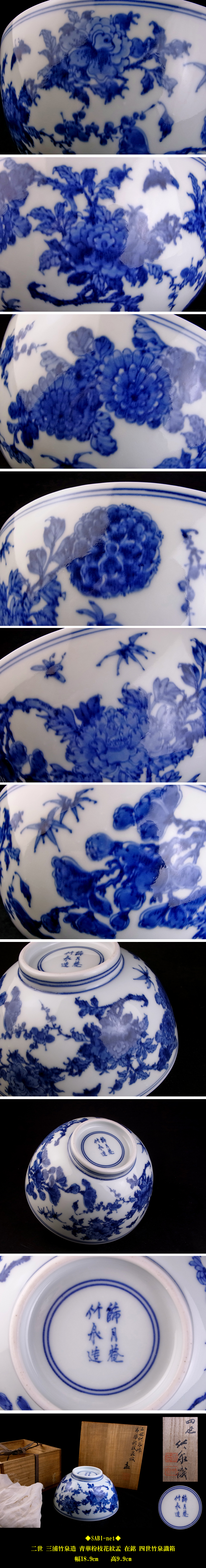 ◆SABI◆ 二世 三浦 竹泉 造 青華 枌枝 花紋 盂 在銘 四世竹泉識箱 ◆ 煎茶 篩月庵 草花 草蟲 細密 鉢 收藏