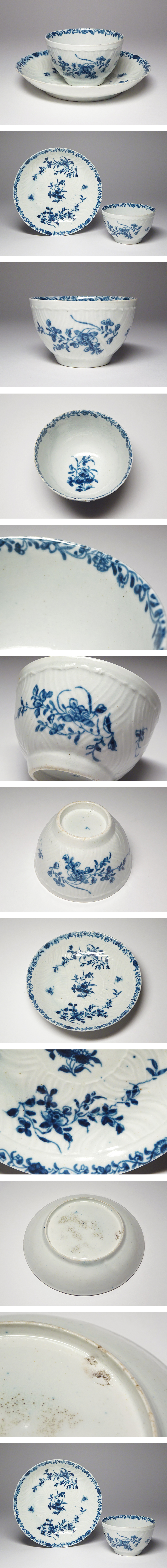 慶應◆18世紀中期 英国・チェルシー古窯 中国趣味 白磁藍絵長唐草文カップ&ソーサー C/S シノワズリ 西洋古美術 收藏