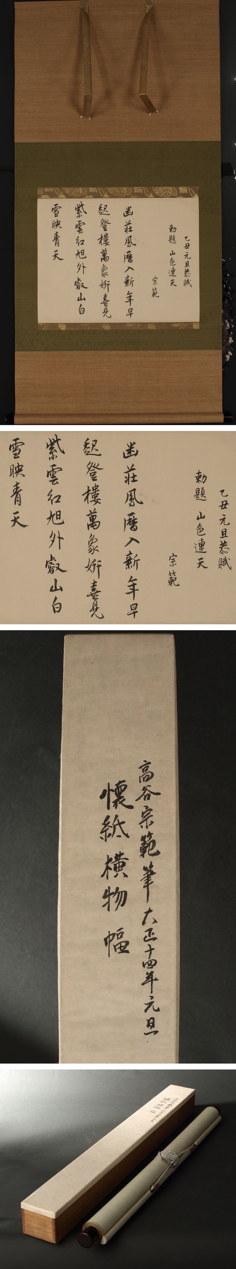 【模写】委託HK◇高谷宗範 漢詩横物「乙丑元旦恭賦 勅題山色連天」大正14(1925)年(掛け軸 茶道家 数寄者 漢詩人 山荘流 松殿山荘) 收藏