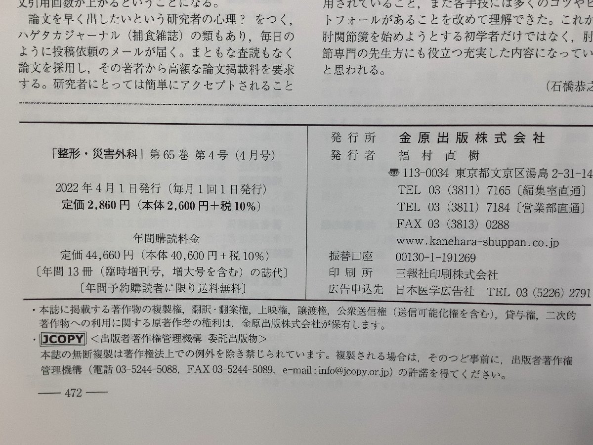 整形・災害外科 2022年4月号 肘関節鏡視下手術のテクニック 医学/整形外科【ta05f】 收藏