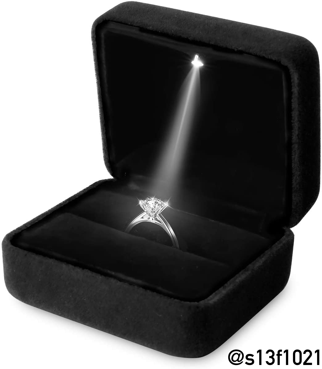 【送料無料】LED付き指輪ケース ジュエリーギフトボックス ディスプレイ ブラック 收藏