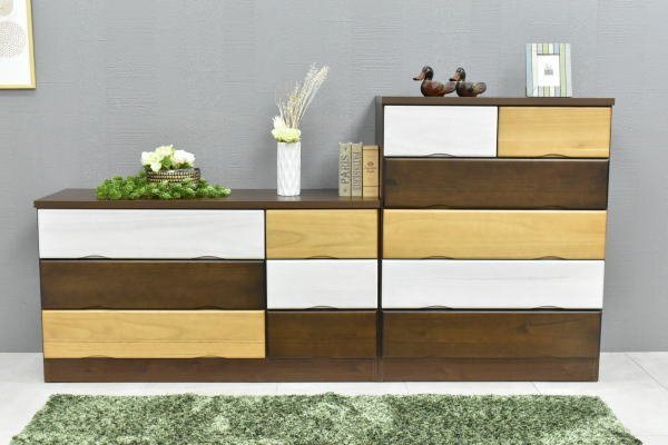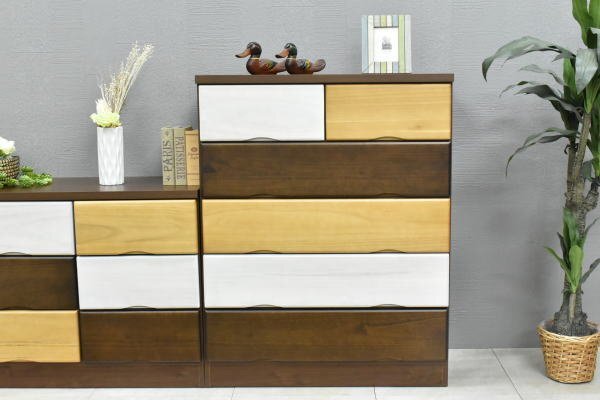 新品 日本製80cm幅5段ハイチェスト 桐材タンス衣類 収納リビング国産チェスト家具おしゃれ BRカラフル便利:ST10-7J-ZQ-KC 收藏