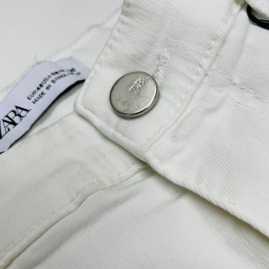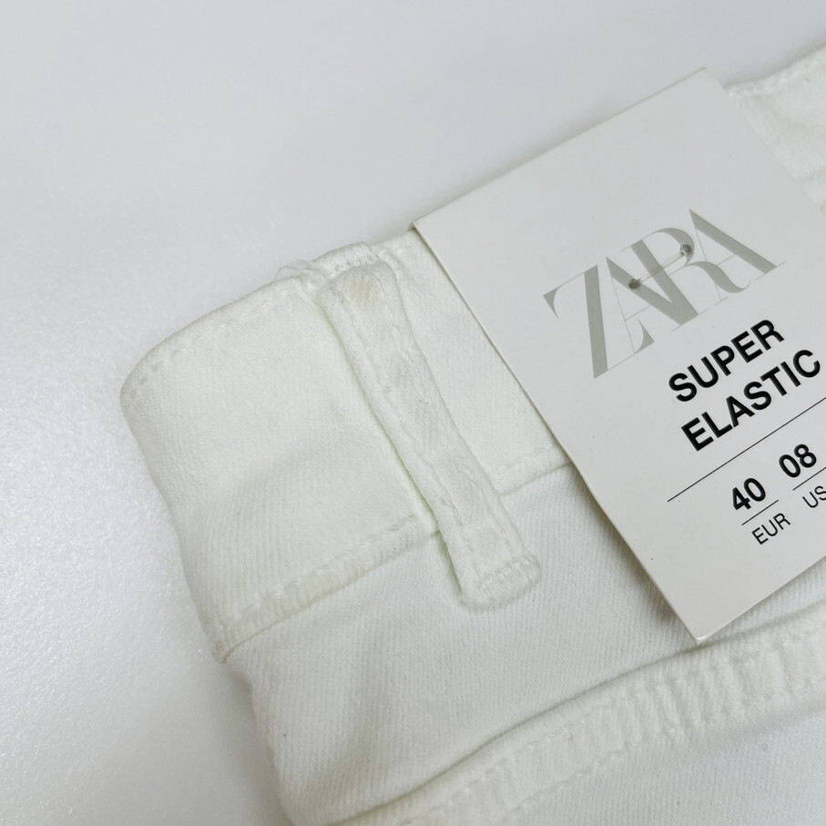 /40/ ZARA ホワイトデニムパンツ レディース タグ カジュアルジーンズ 通勤 ストレッチ 大人可愛い コットン生地 デイリー ザラ 收藏