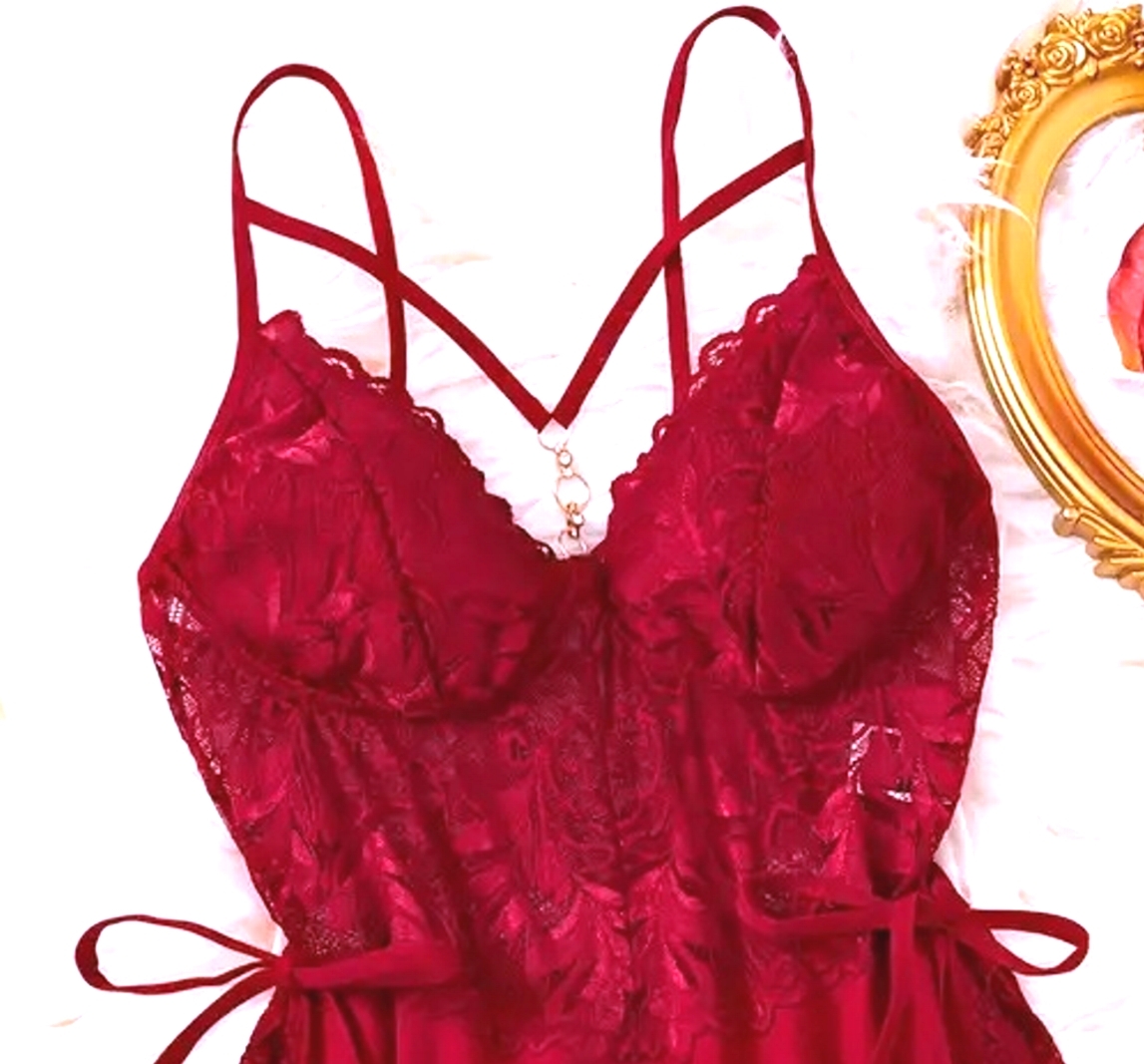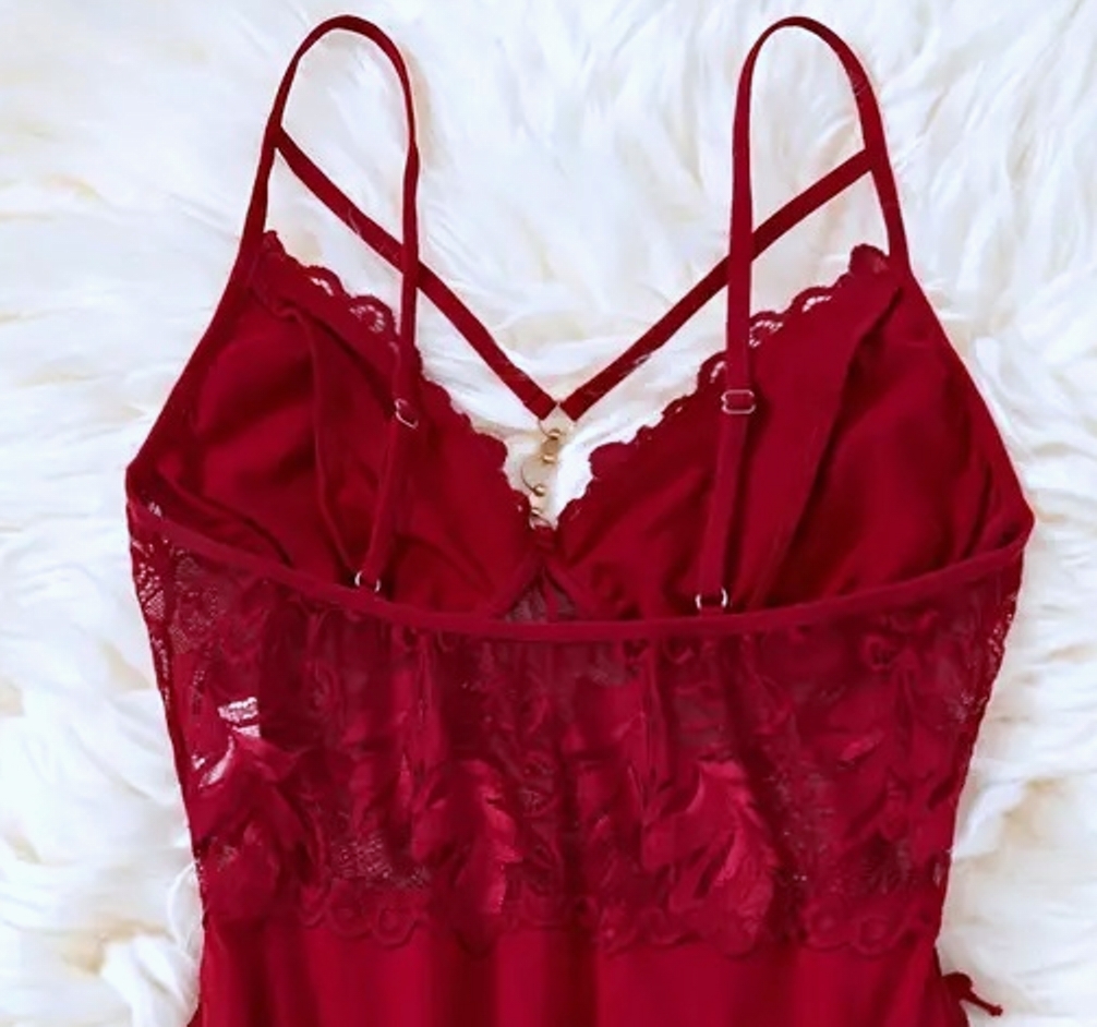 ◆ ラグジュアリー ソリッドレース スリップ 3L-86(バスト100-108cm 着丈 約86cm) レッド系♪新品:大きいサイズ◆送料230円(匿名)◆ 收藏