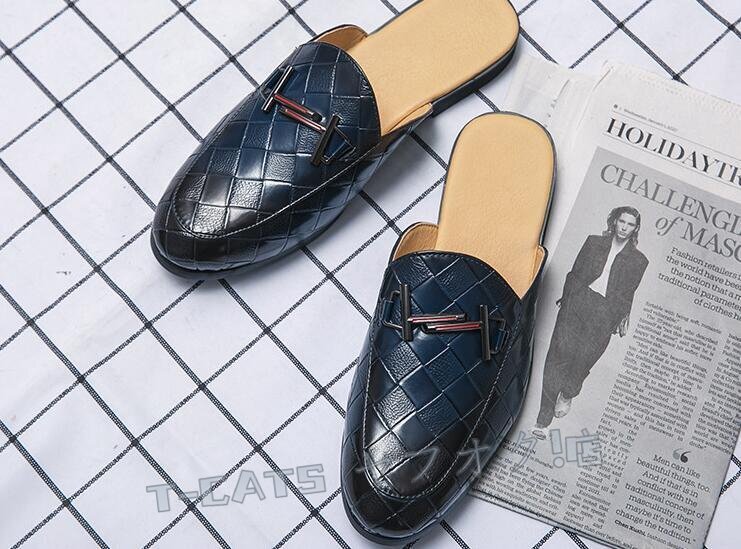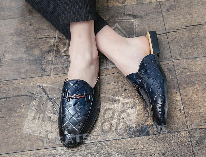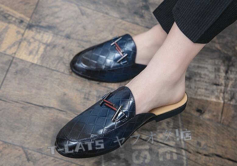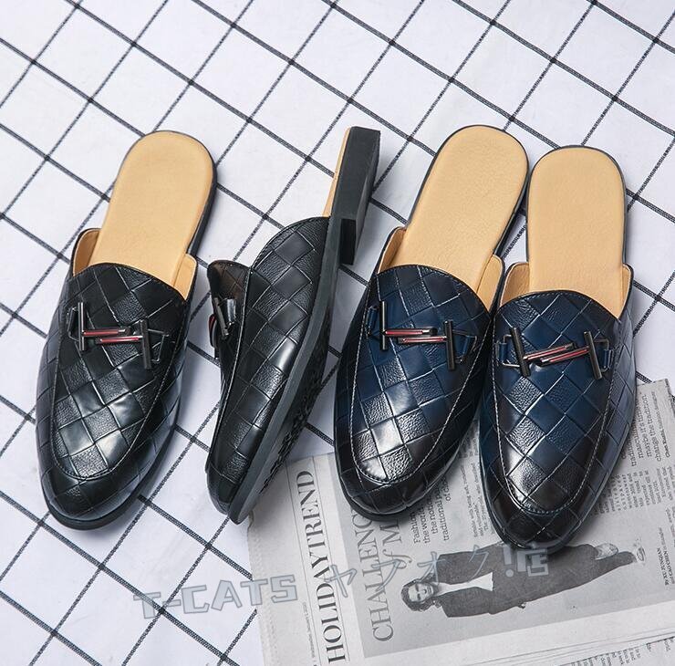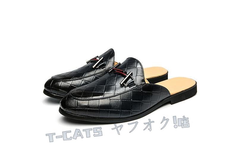 ☆新品人気 メンズ サボサンダル スリッパ スリッポン 編み柄 スニーカー オフィス シューズ 通気性 着脱簡単 ブルー 26.5cm 收藏