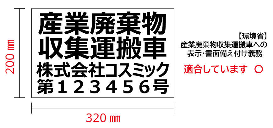 【産業廃棄物収集運搬車表示 4行】8枚セット;マグネットシート+文字カッティング H200mm-W320㎜ オーダー製作 ※産廃 收藏