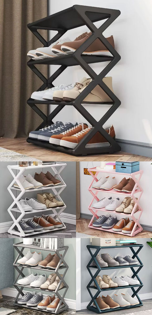 シューズラック グレー 4段構造 デザイン1 組立式 靴で散らかった玄関スペースをすっきり整頓 AP-UJ1114-GY 收藏