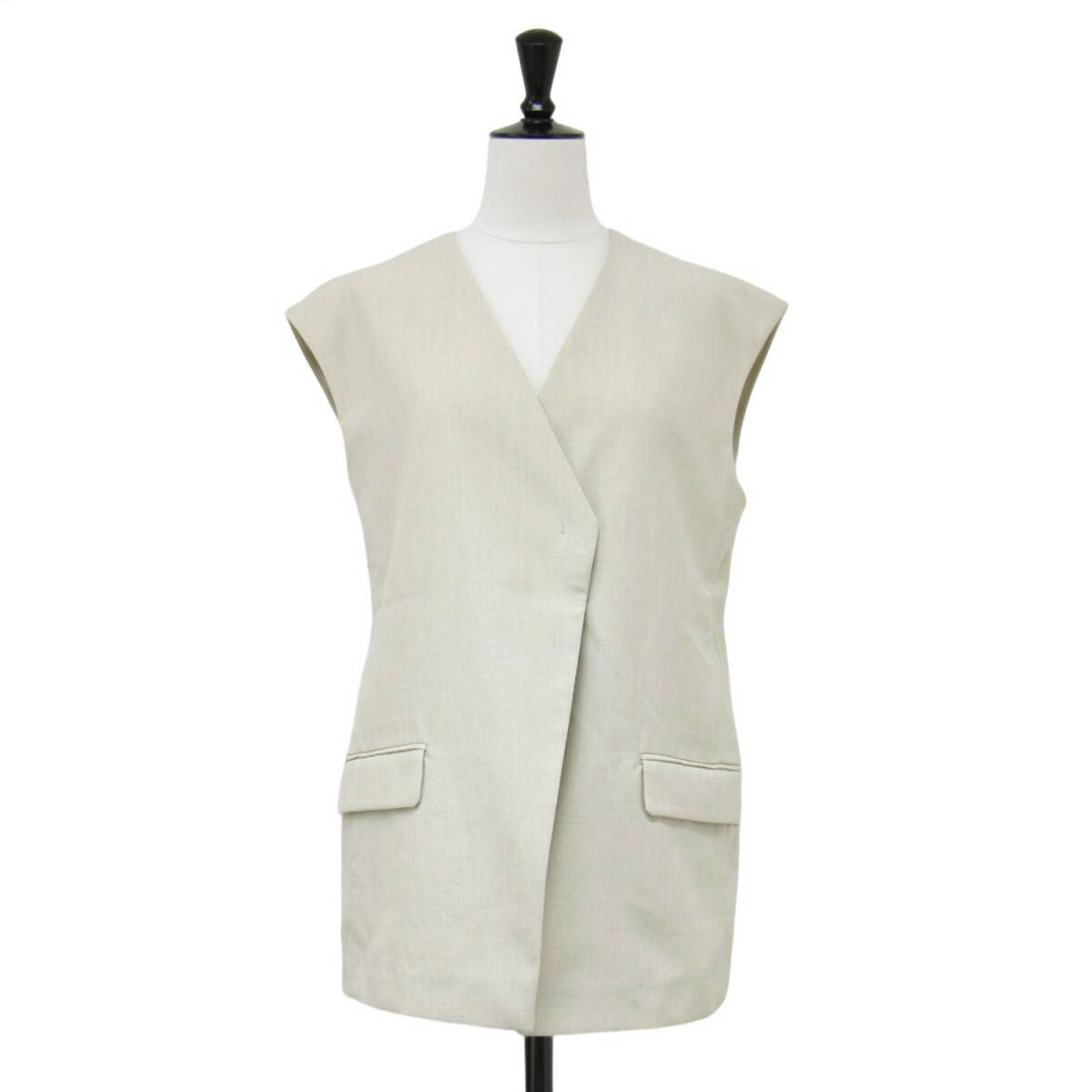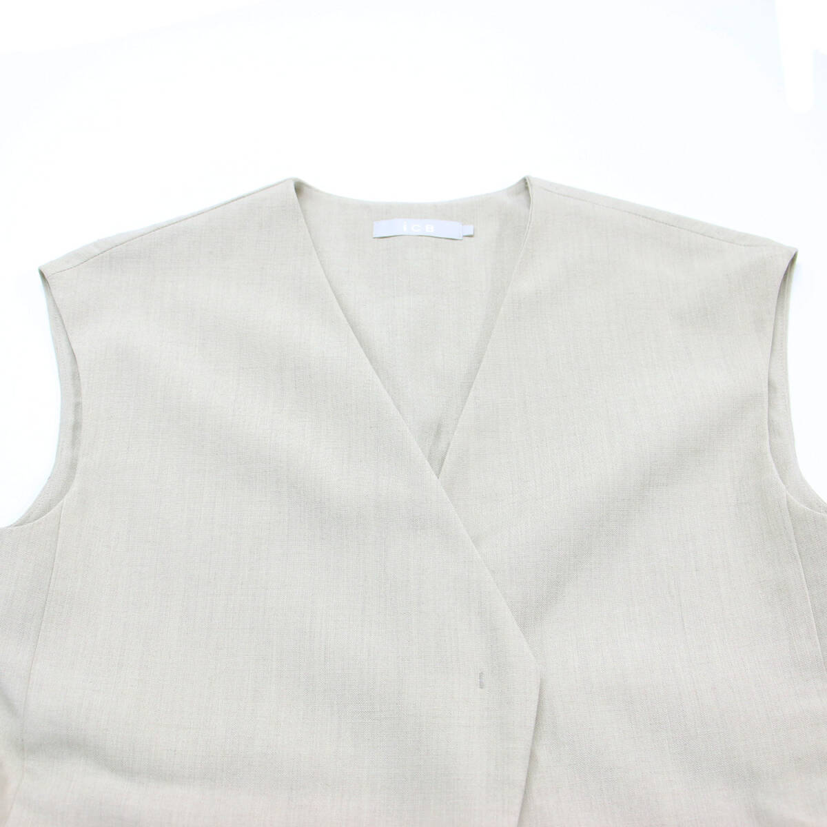 【美品】ICB アイシービー ベスト ベージュ サイズ:4(M) / ポリエステル レーヨン リネン プレーン ウィーブ ジレ / Vネック ベスト 收藏