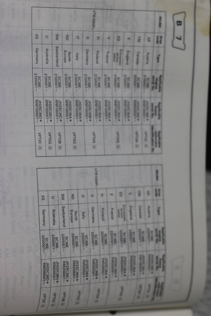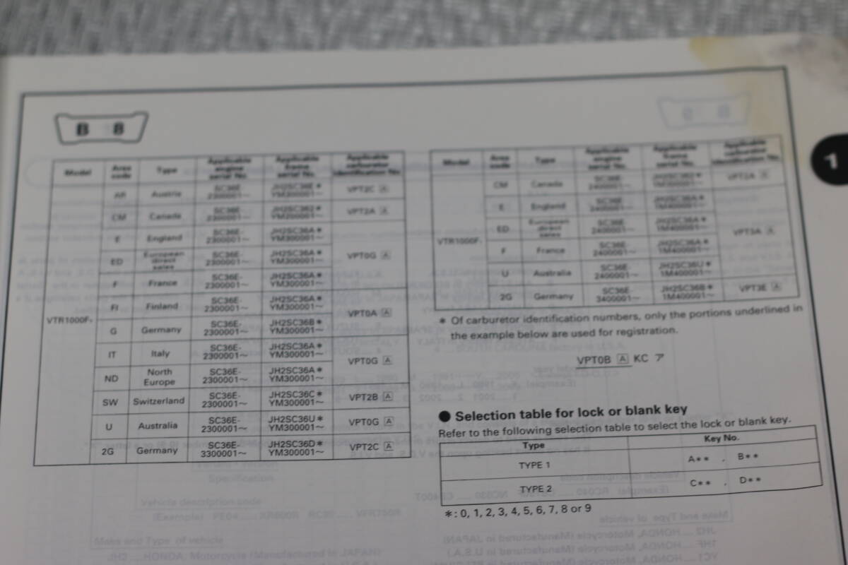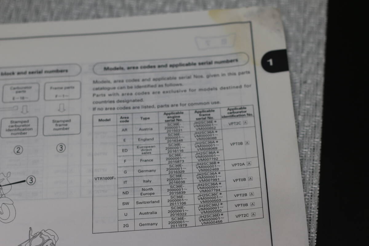 逆車用 VTR1000F V W X Y 1 英語版 6版 パーツリスト パーツカタログ 收藏