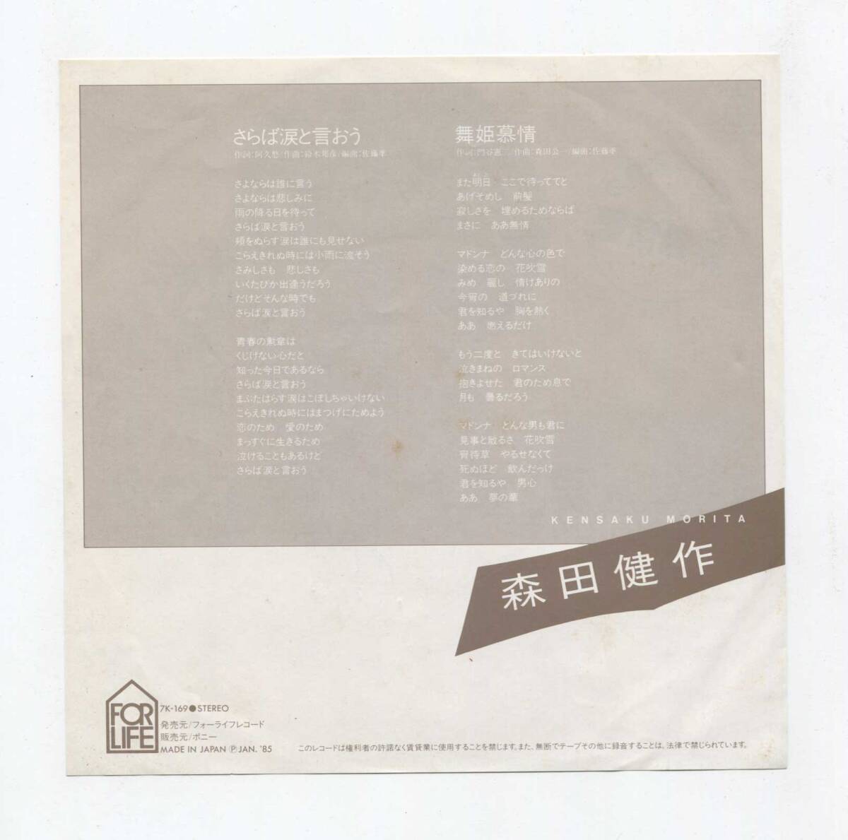 【EP レコード シングル 同梱歓迎】 森田健作 ■ 新録音盤 さらば涙と言おう ■ 舞姫慕情 ■ 阿久悠 鈴木邦彦 佐藤準 收藏