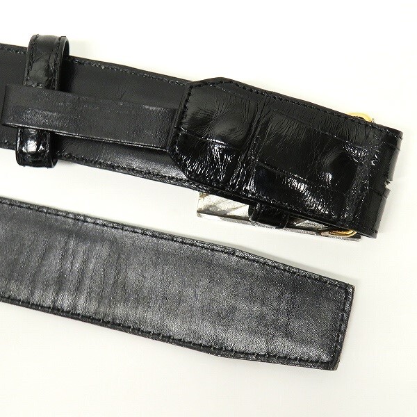 #anzj ベルト 黒 レザー クロコダイル コンビバックル K20YG イエローゴールド Pt900 プラチナ メンズ [912380] 收藏