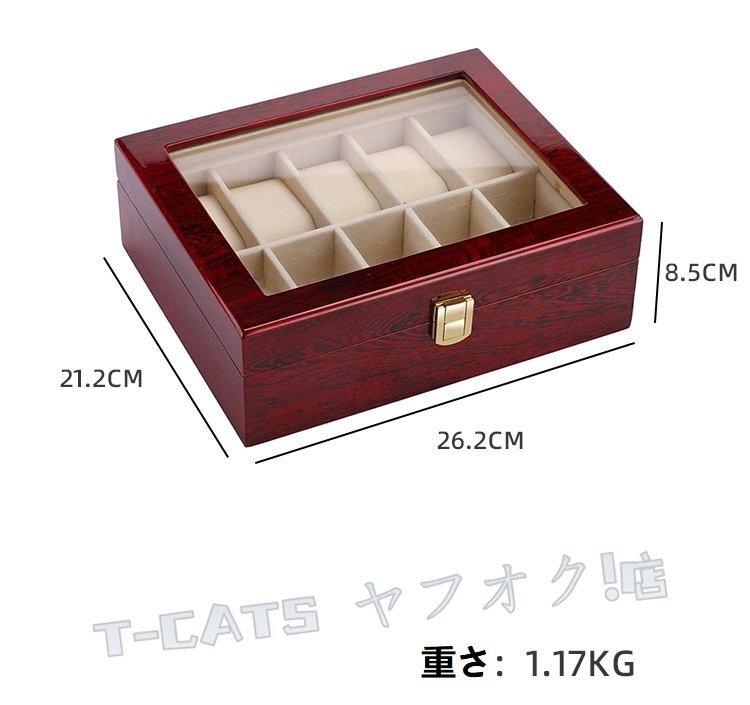 ☆新品時計収納ケース コレクションケース 木製 10本用 BOX 腕時計ケース 高級ウォッチボックス コレクション インテリア保管展示 レッド 收藏