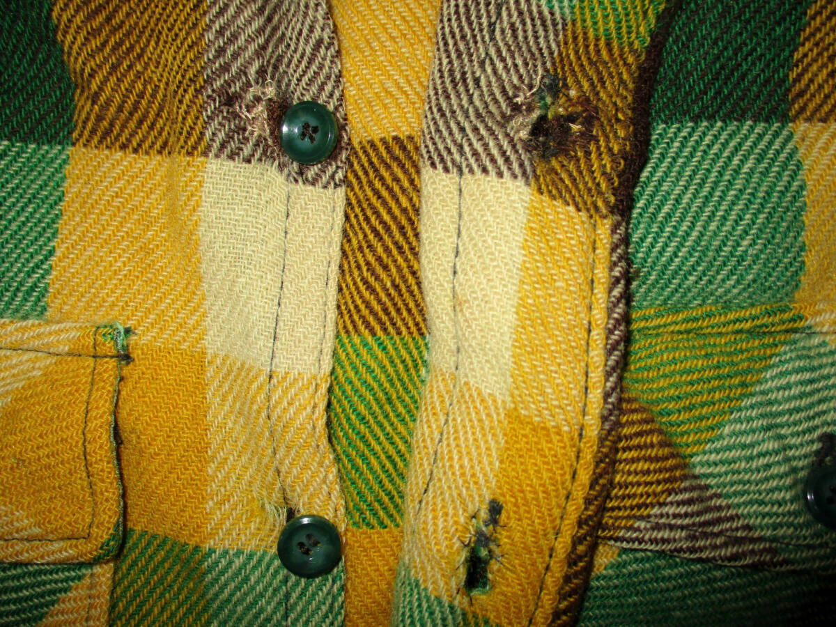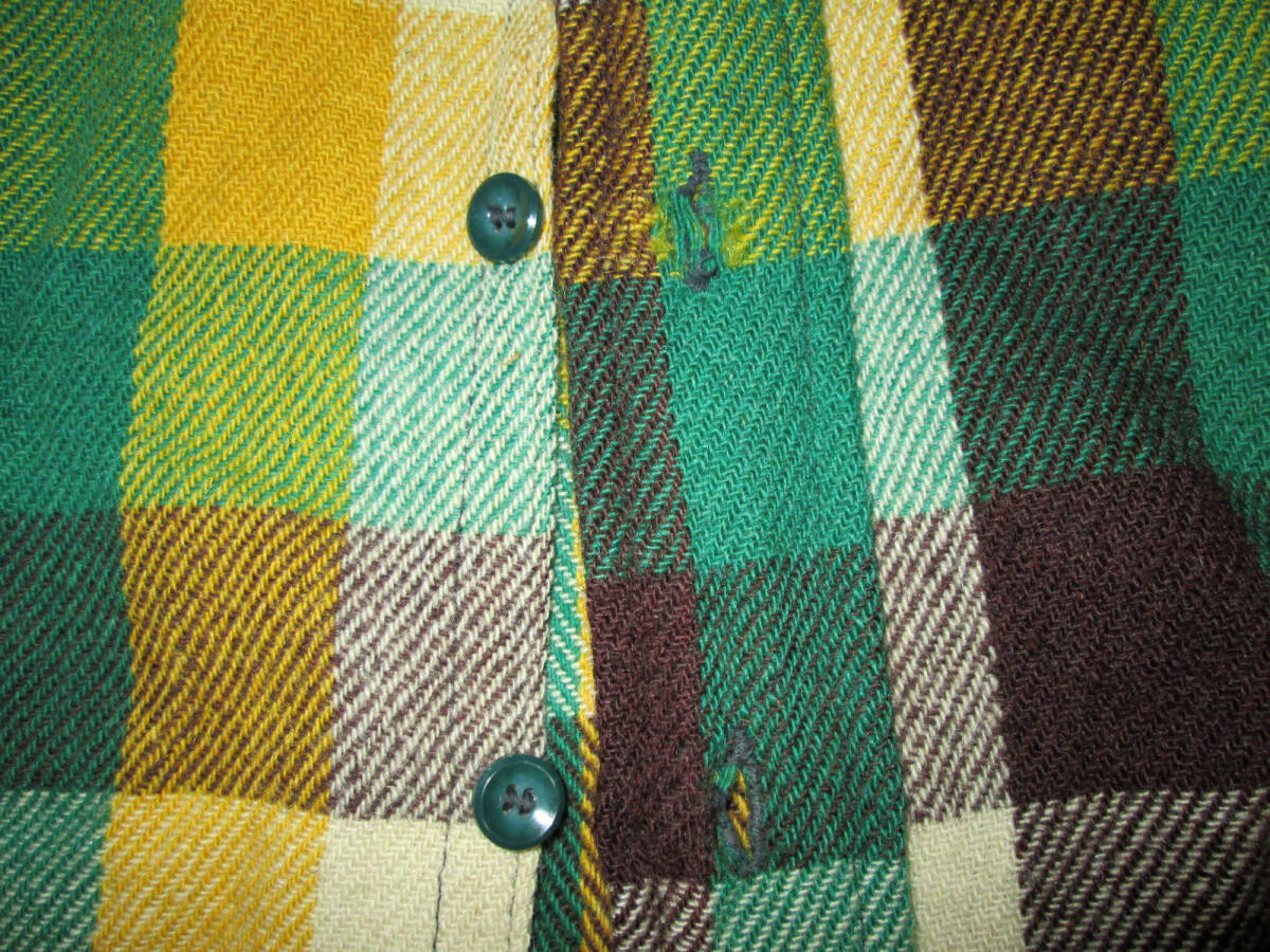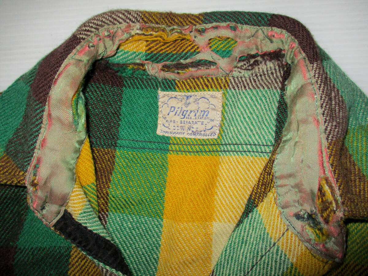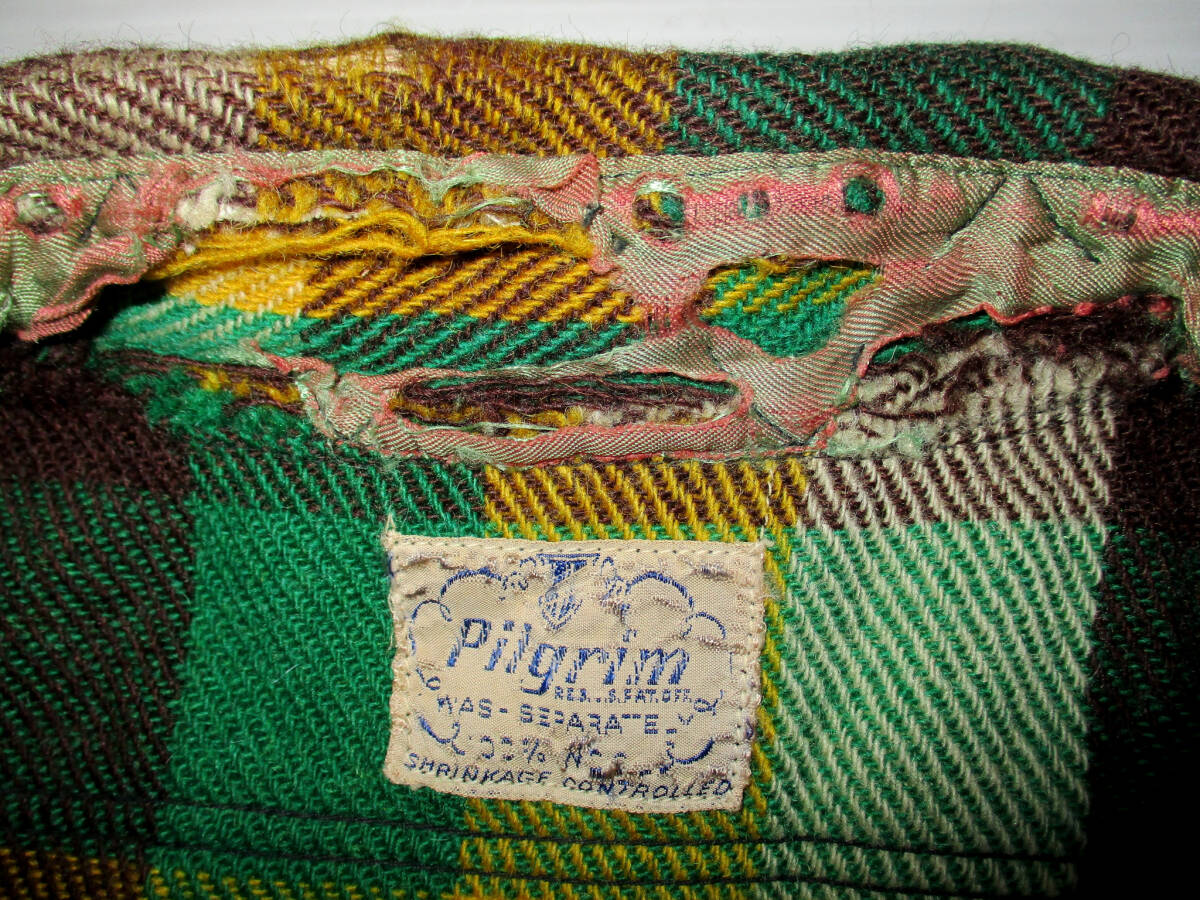 50's Pilgrim ピルグリム ウールチェックシャツ Lぐらい? ヴィンテージ です。ピルグリム 50年代ぐらいのUSA製の希少なウールシャツです。色はグリーン×イエロー系×ダークブラウン?系です。色は画像でご判断ください。| 出价者 | 信用 | 价格 | 时间 |