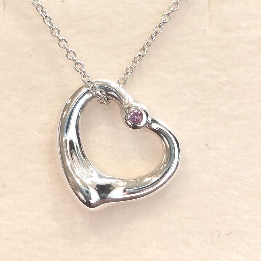 新品 正規品 ティファニー tiffany&co. ネックレス シルバー ティファニーオープンハート ピンクサファイア 箱 巾着 紙袋 ギフト 收藏