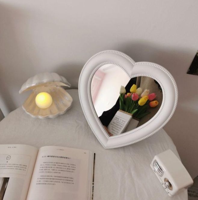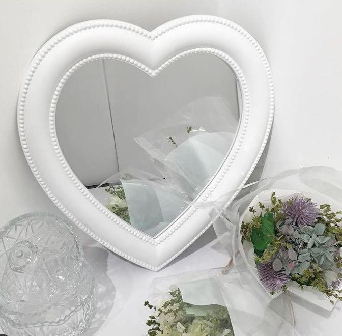 卓上 壁掛け ハート 可愛い 鏡 ミラー インテリア 玄関 プレゼント 韓国 N278 收藏
