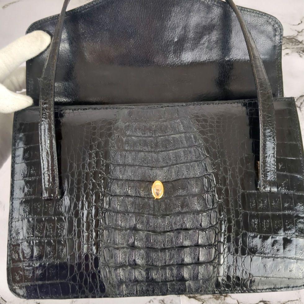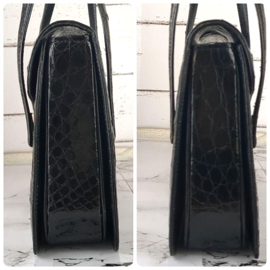 定価22万!!! 極希少クロコ!!!【王道フォーマル型】カイマンクロコ◎ ブラック 黒 クロコダイル 鰐革 ハンドバッグ レディース 美艶 高級感 收藏