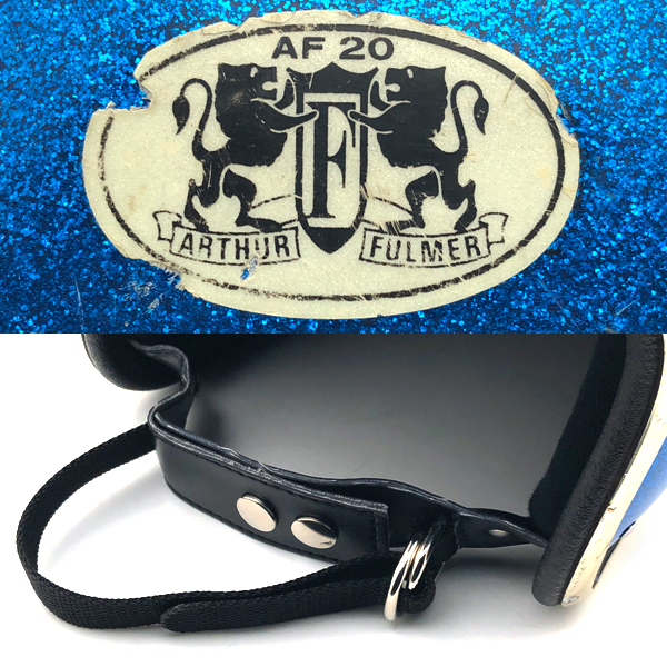 送料無料 5月27日値下 ARTHUR FULMER AF20 BLUE METALFLAKE 62cm/アーサーフルマービンテージヘルメット青ブルー英車英国車トライアンフ70s 收藏