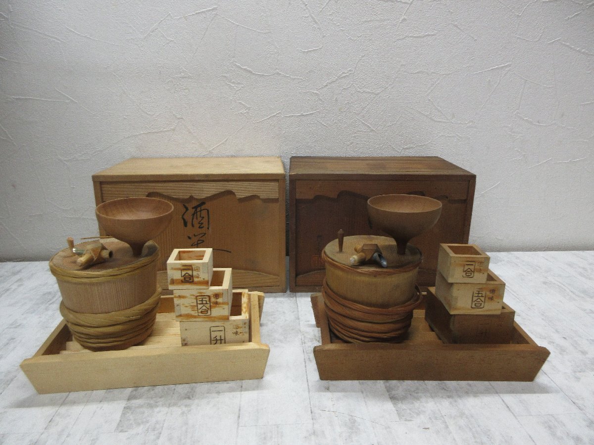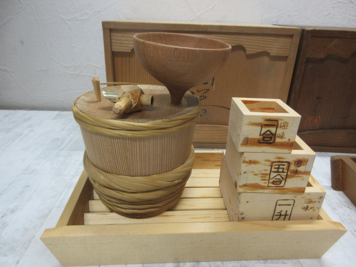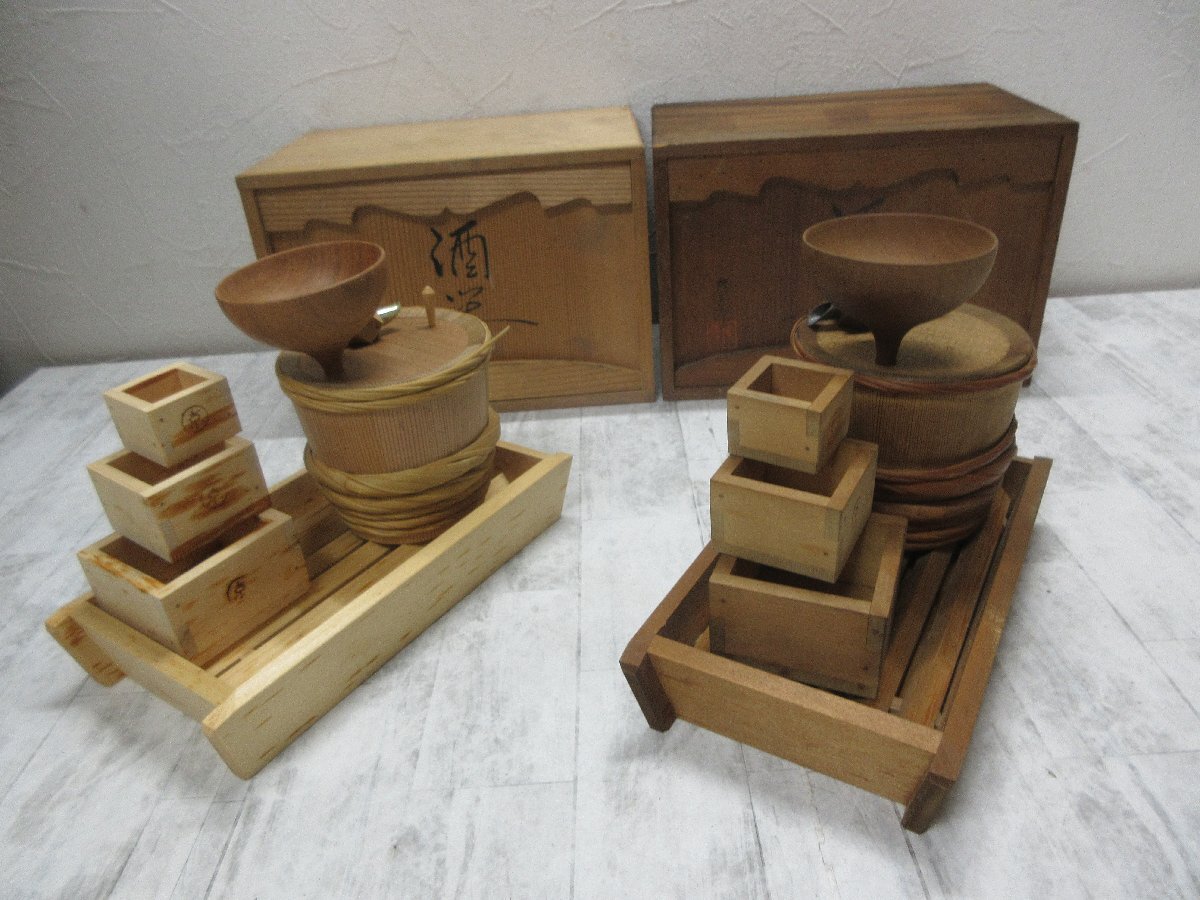 yo3 たる源 酒器セット 共箱 酒樽 酒枡 升 漏斗 酒台 木製? 2箱 【星見】 收藏